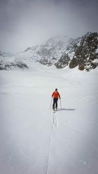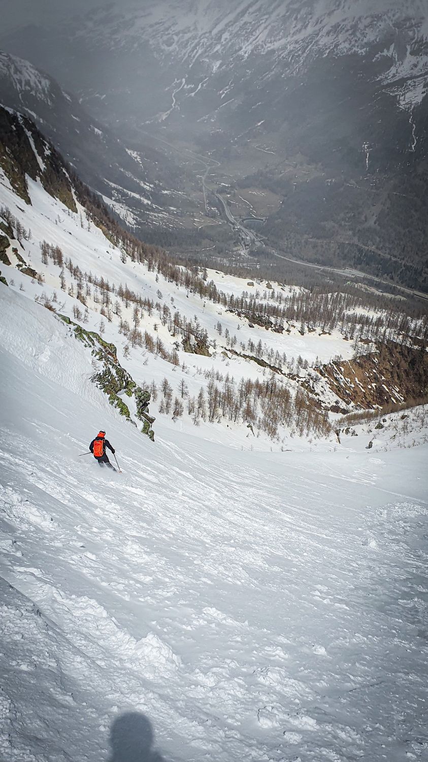 Abfahrt Mischung zwischen hart und Presspulver. Angenehm zu fahren. Erst unterhalb von 2000m weichte der Schnee etwas auf. Nach Couloir eine kurze Tragstelle. Danach Abfahrt über Bodmen und die nördlichen Wiesen bis fast zur Strasse.