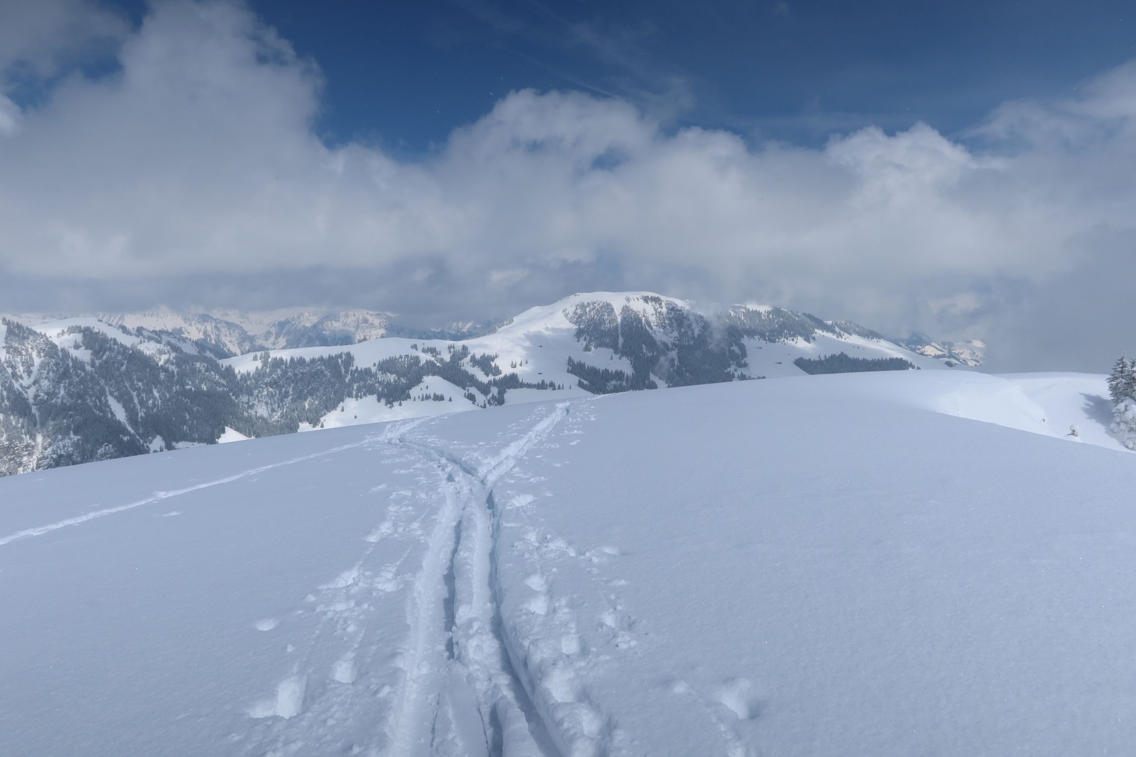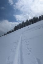 Die Ski konnten schon beim Parkplatz angeschnallt werden. Auf der üblichen Route Aufstieg bis zur Sennhütte. Die Alpstrasse war mit der Sonneneinstrahlung bald "geräumt". Ab Sennhüttte richtig gute Verhältnisse und angenehme Spur, besten Dank dafür. Abfahrt bis zur Sennhütte obenuse, ab da mit der Erwärmung etwas pampig, aber gut zu machen.