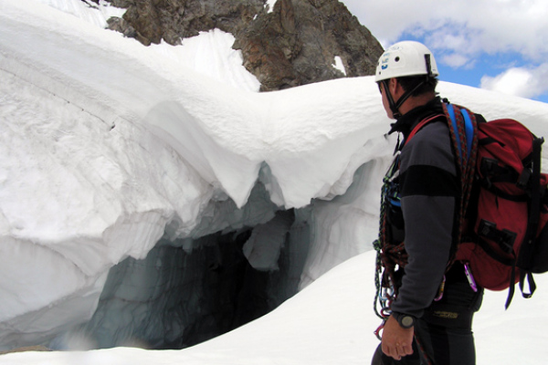 Am Sonntag über Ostgrat auf die Watzespitze. Auf Trittfirn (ohne Steigeisen) zum Einstieg, am Grat optimale Verhältnisse, bereits ab 6.30 Uhr Sonne. Abstieg über Normalweg zunehmend unangenehm. Felspassagen können ab Scharte mit 50(!)-m-Seil gut abgeseilt werden, Gletscher wird immer schlechter (breite Spalten, Steilpassagen werden bald ausapern). Pickel und Steigeisen unerlässlich. Abstieg benötigt fast gleich viel Zeit wie Aufstieg.