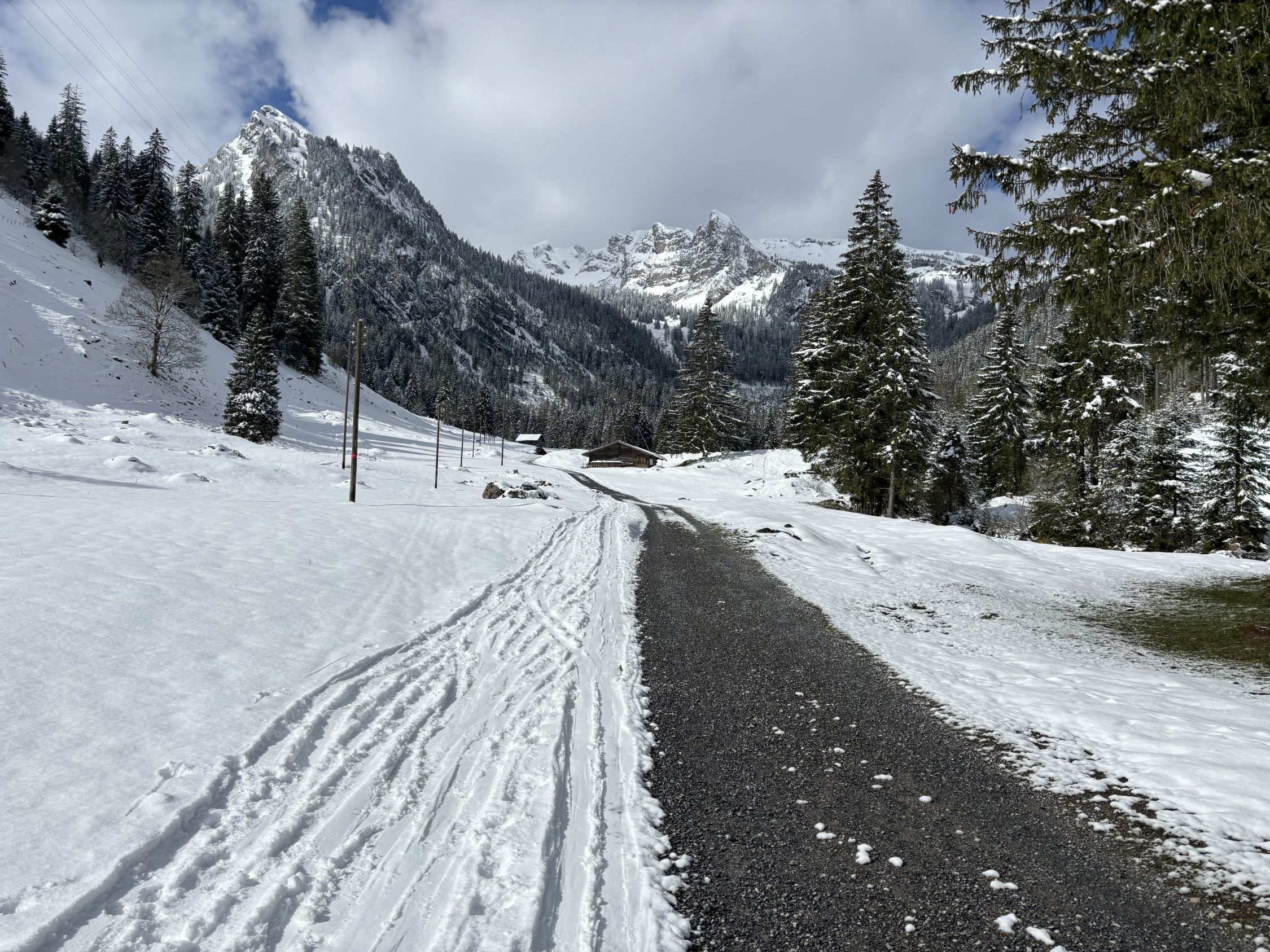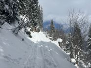 Aufstieg + Abfahrt durch den Wald geht erstaunlich gut, oberhalb 1'400m hat es viel Schnee.