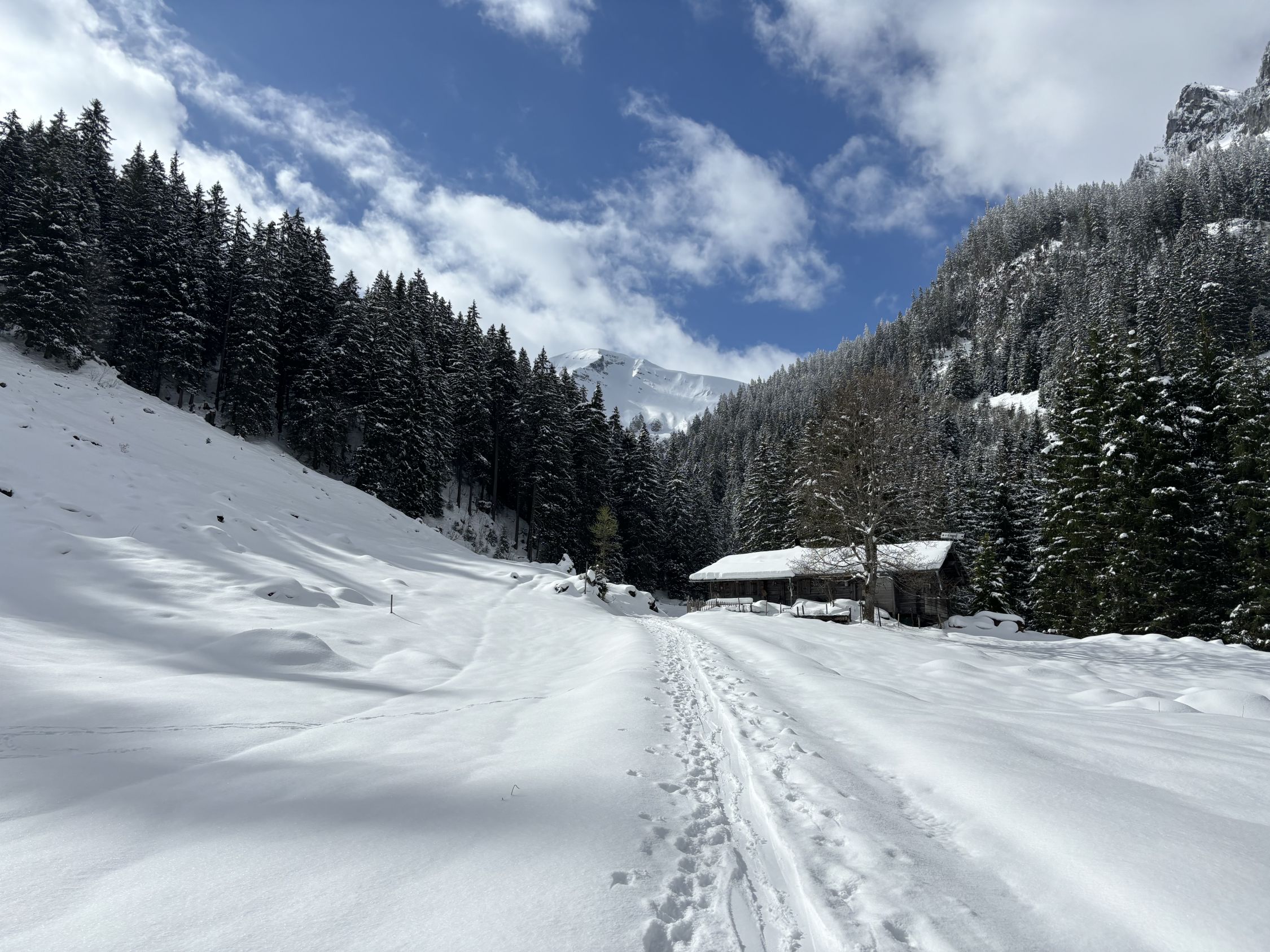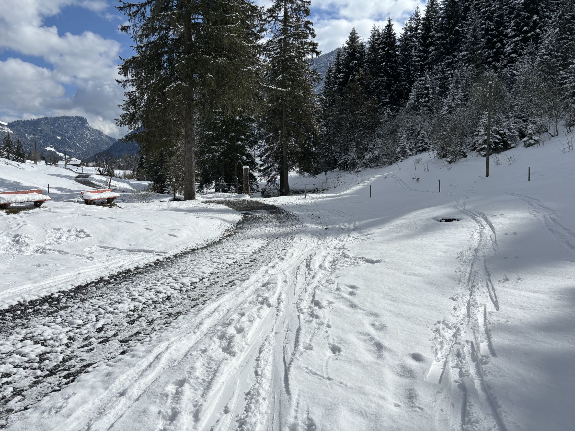 Schöner Pulverschnee mit Sonne! Heute war die Tour ab Parkplatz Senggi durchgehend auf Schnee begehbar.