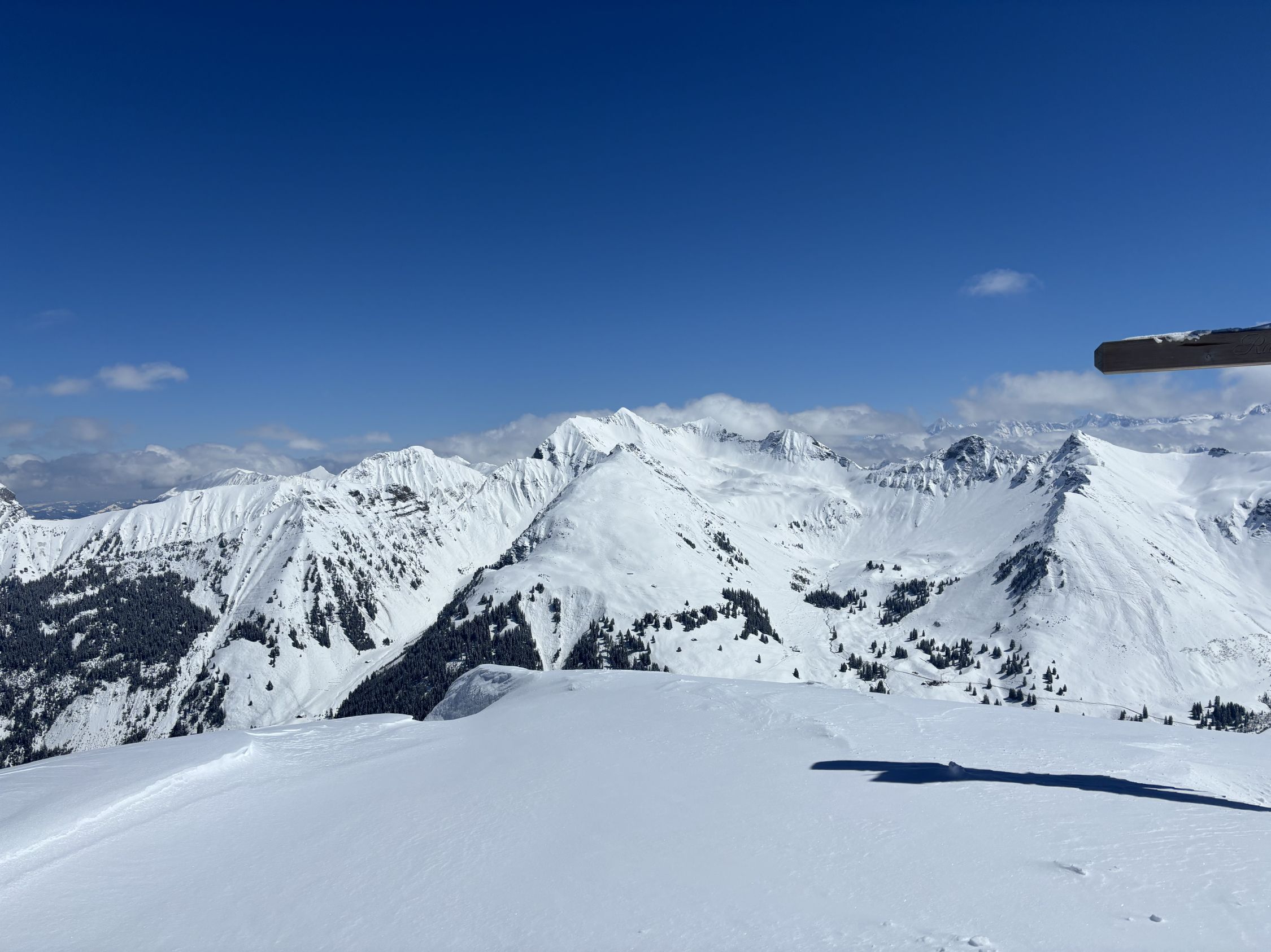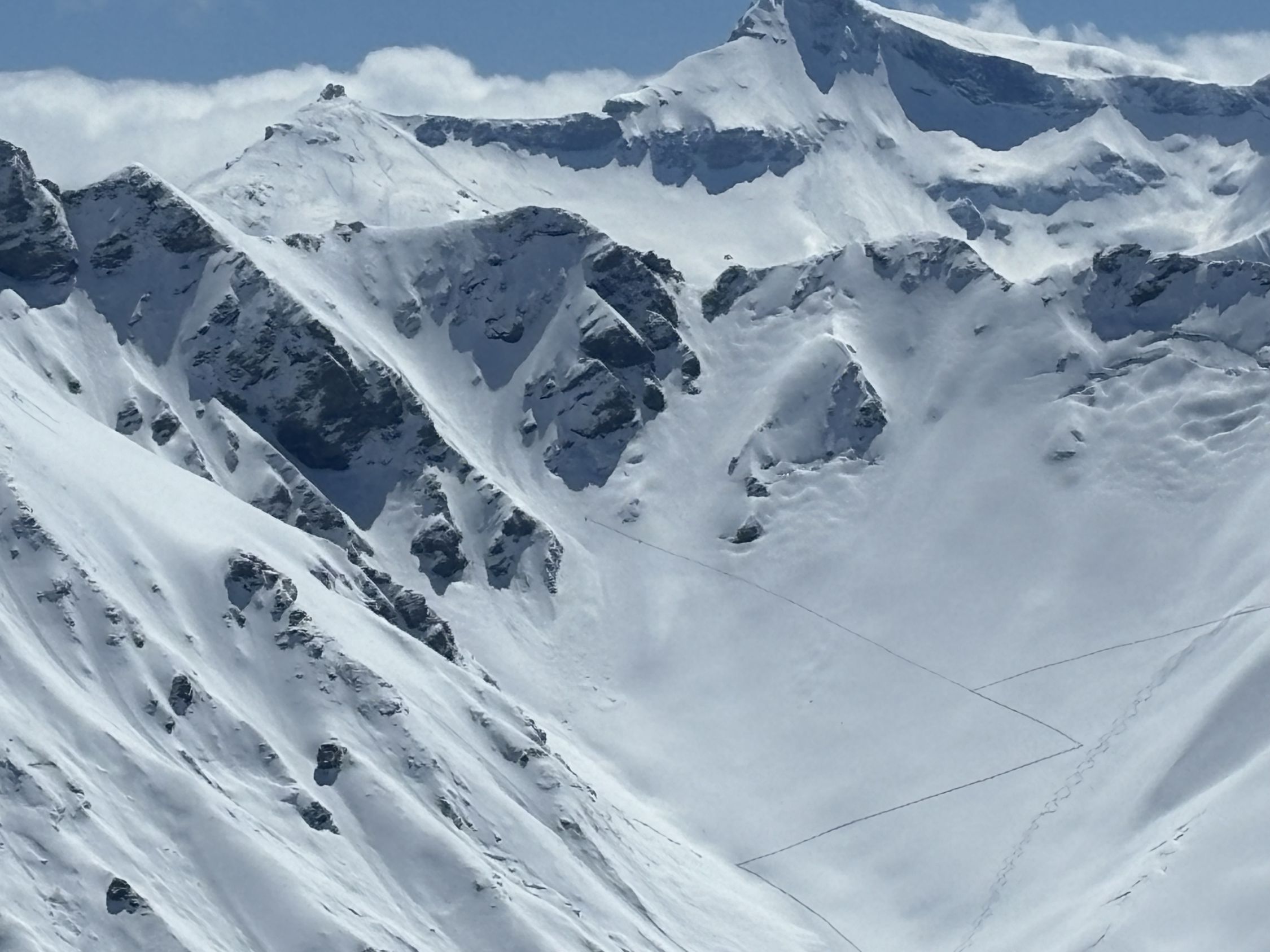 Siehe Fotos vom gegenüberliegenden Albristhorn - das sah aus der Ferne vielversprechend aus - die Abfahrten stieben jedenfalls. Vielleicht folgt ein Gipfelbuch-Eintrag davon?