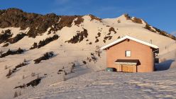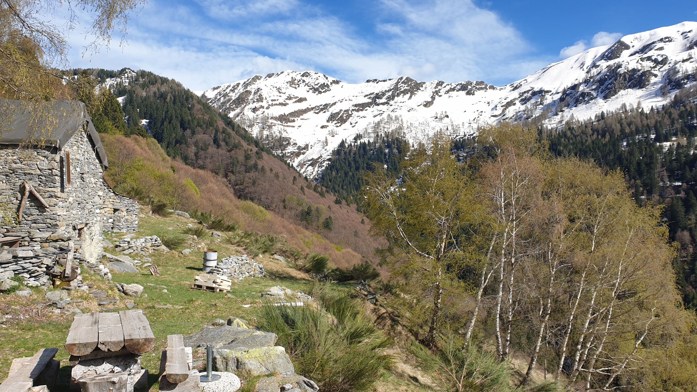 Ab Carena über Alpe Fossada fast schneefrei bis zum Grat. Dann viel Schnee bis zur Hütte. Der Unterschied zwischen Süd und Nordhang ist extrem.