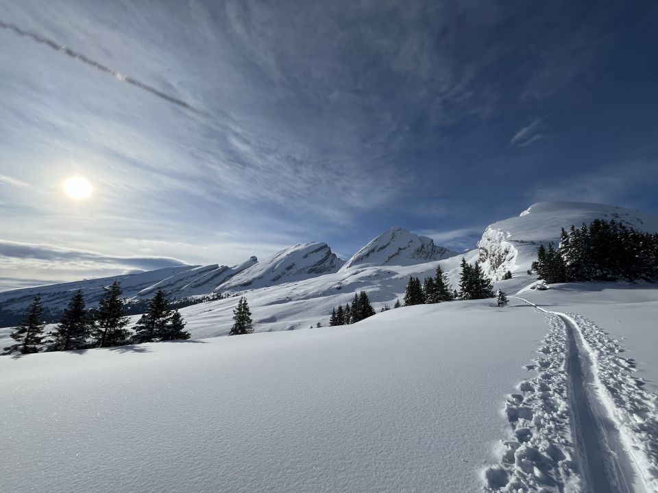 Start um 6: 30 auf dicker Schneedecke, tragend gefroren, in den Waldwegen Bruchharsch - was in der Abfahrt Problematisch war. Ab Strichboden dann Pulver bis Gipfel. Aufstiegsspur gut angelegt Teil zugeweht. Am Gipfel um 9:00 kaum Wind. Abfahrt bis Strichboden Top, dann auf Waldweg mit dicken Bruchharsch. Bin ab 1400 dann diretissima durch Couloirs, ausserhalb der Wege kein Bruchharsch, unten um 9:45 leichter Bremsschnee.