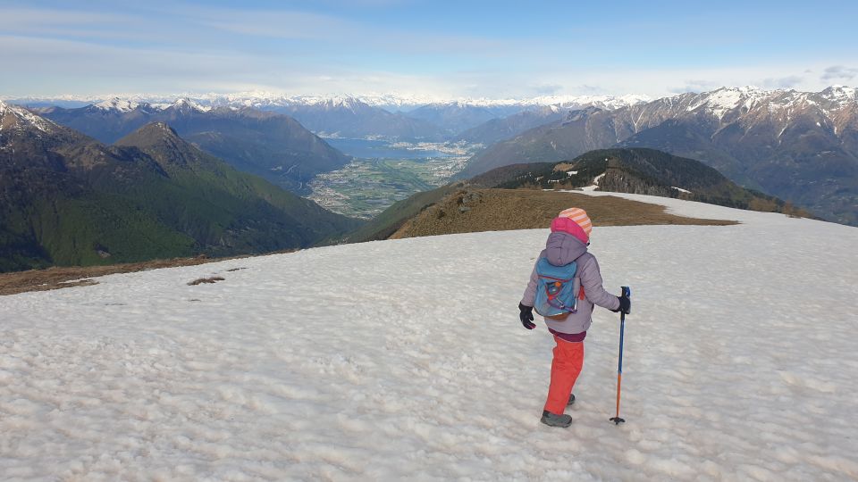 Ab Carena über Alpe Fossada fast vollständig schneefrei. Südflanke aper. Ab dem Grat nordseitig viel Schnee