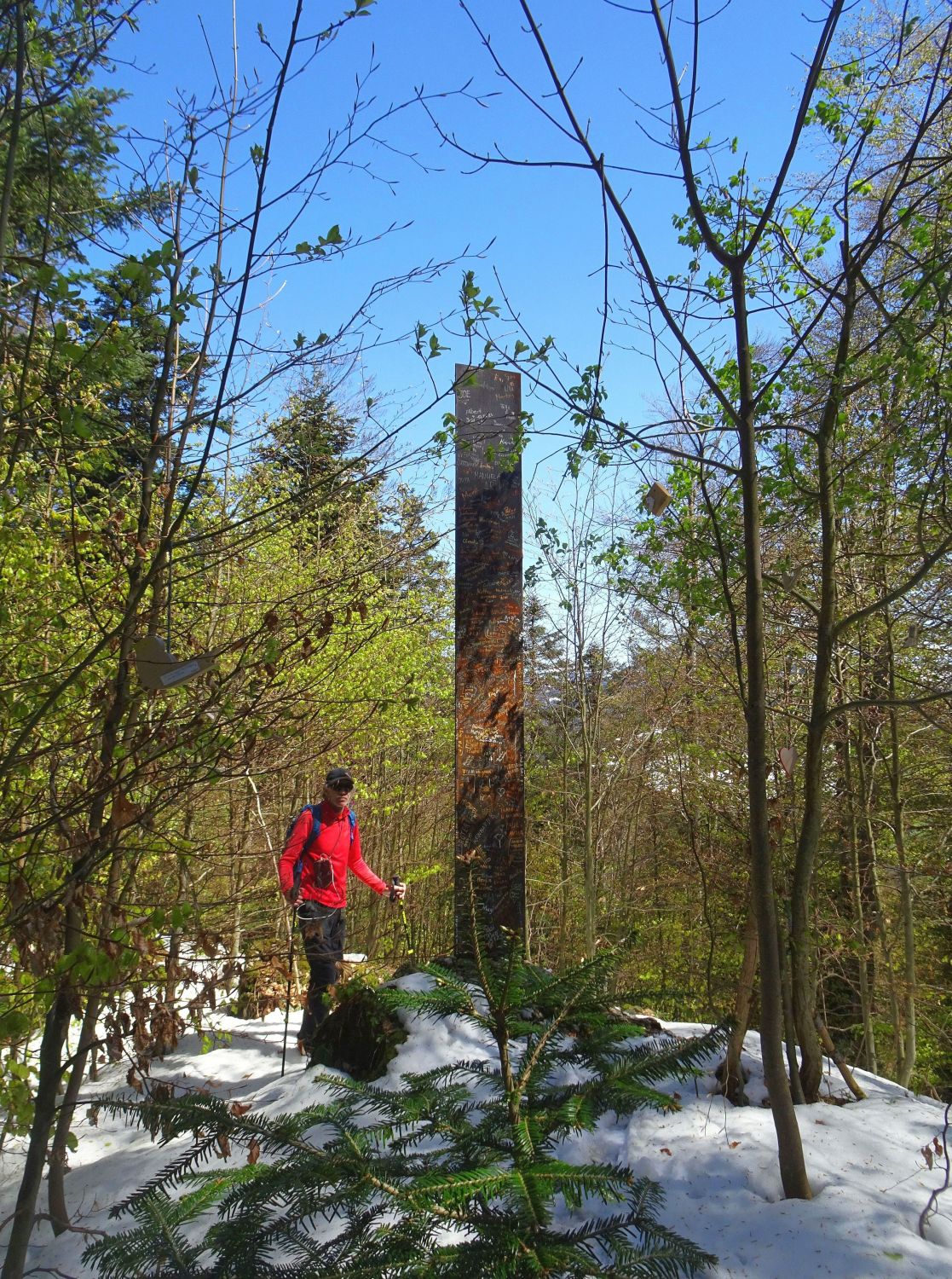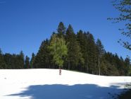Wald- und Tobelwege weitgehend trocken, nur im oberen Bereich von Schweizberg und Rotenberg noch Schneeauflage. Da unschwieriges Gelände und schon Spuren, jedoch gut zu begehen.