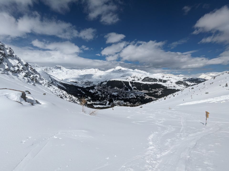 Im Tal leider sehr wenig Schnee, aber genug für einen Aufstieg vom Aroser Stausee. In den höheren Lagen reicht es schon. Die Schneedecke war oft ein bisschen hart, weicher in der Sonne später im Tag. Ich bin selber nur zu Maienfelder Furgga gekommen, aber nicht wegen die Verhältnisse umgekehrt.