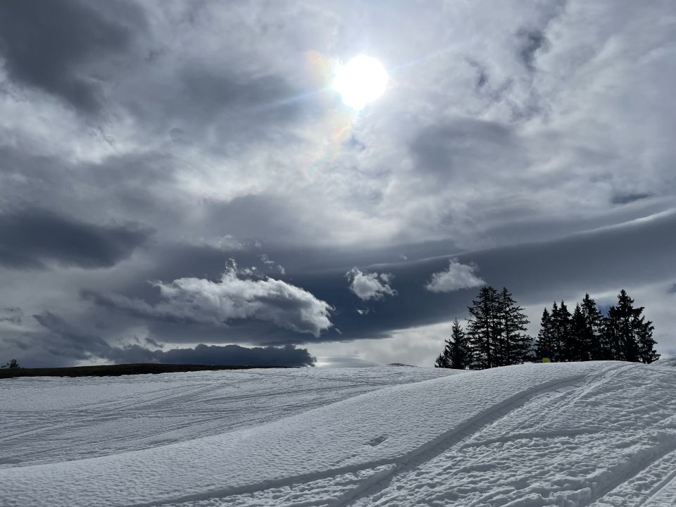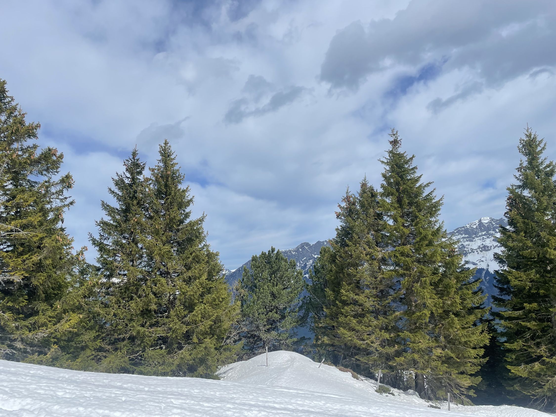 Ich war aus familiären Gründen in der Gegend und ging nach dem Motto: Bewegung geht vor Brunch nochmal nach Tannenbodenalp. Der Neuschnee schwindet rasant, bei 12 Grad und Föhn auch kein Wunder. Der Aufstieg war hübsch, das ist ja schon die halbe Miete; die Abfahrt im tiefen Bremsschnee dagegen bestenfalls machbar. Die Touren ab hier sind noch wenige Tage ohne Tragen möglich. Es waren einige Türeler unterwegs heute.
