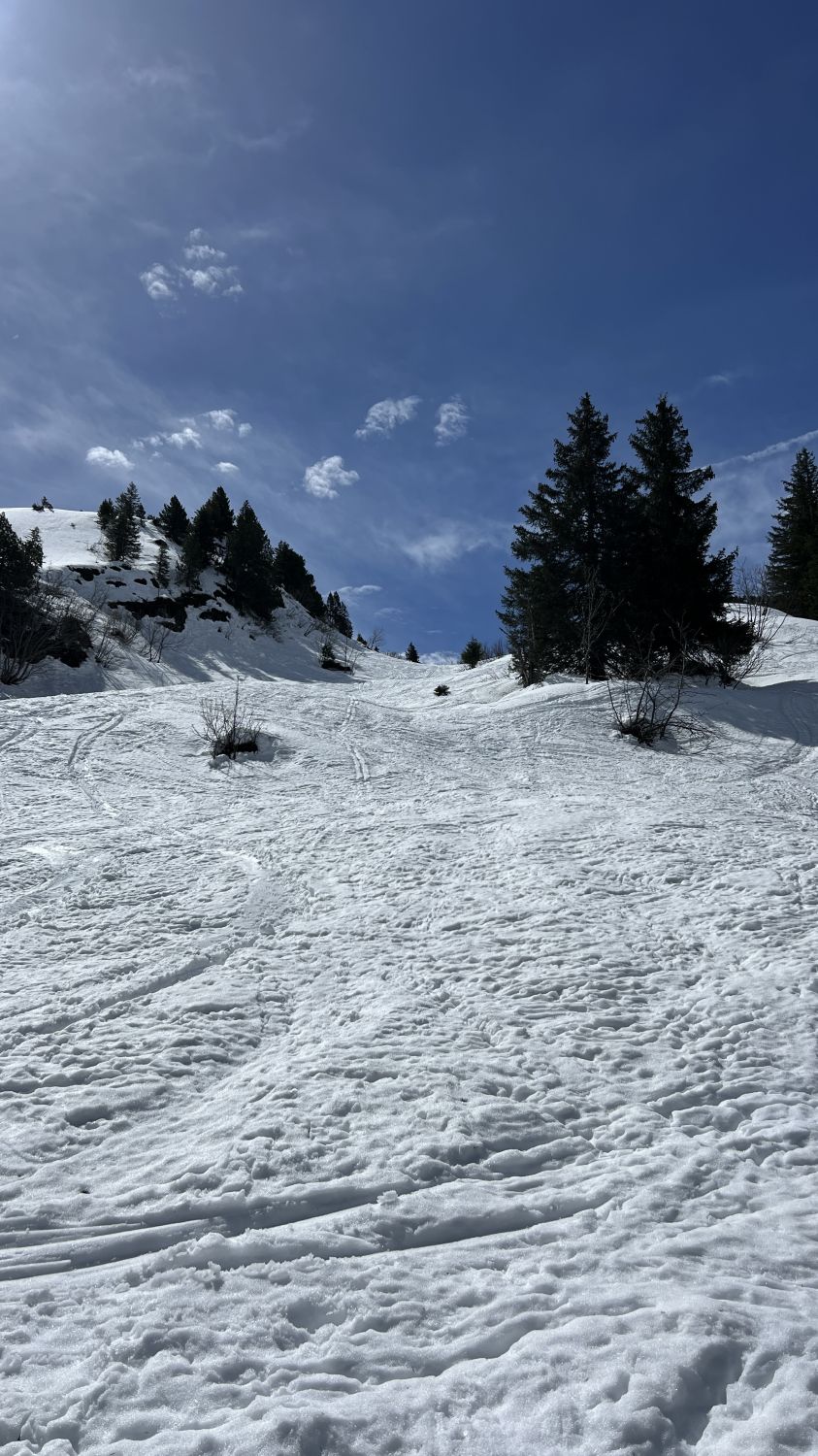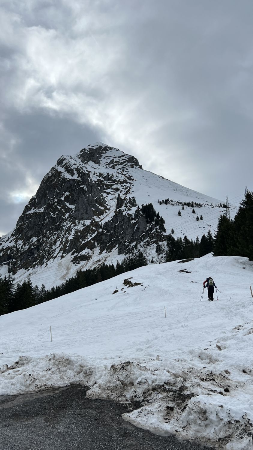 Strasse bis Naturfreundehaus aper. Wer dort kostenlos parkiert, geniesst hoffentlich im Anschluss der Tour etwas Leckeres vom Gasthaus. Noch viel Schnee bis zum Gipfel, jedoch wegen dem Föhn und fehlender Abstrahlung bis zum Gipfel alles durchfeuchtet. Vom Gipfel bis zum Gasthaus ohne eine einzige Kurve geradeaus runter… Deshalb ein „Machbar“, andere würden es vermutlich „gut“ nennen.