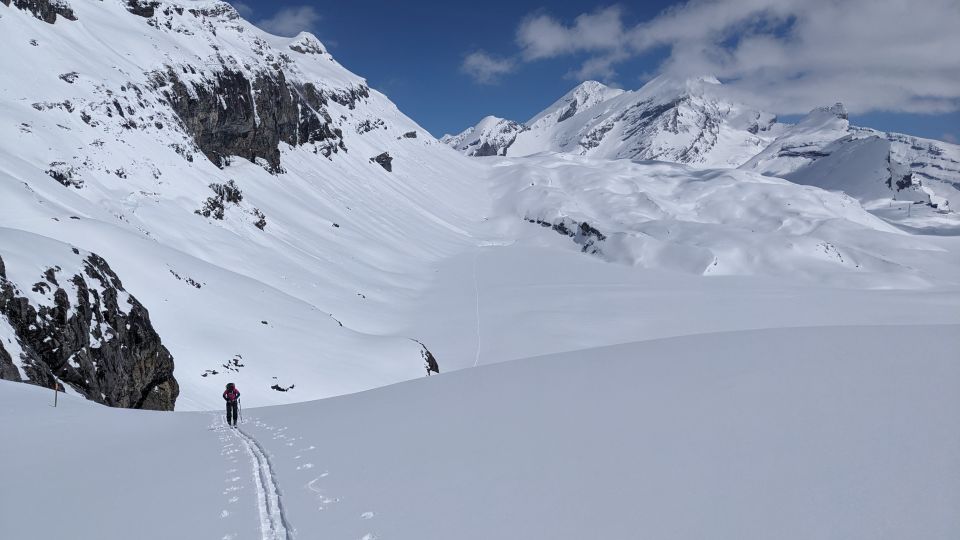 Das Gebiet ist sehr gut eingeschneit, die Schneefälle der letzten Woche haben sich gut gesetzt.