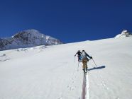 In der Abfahrt phasenweise etwas Bruchharsch. Die westliche Variante hat super funktioniert und wir konnten bis 1500m durch fahren. Allerdings ist die Schneedecke stellenweise dünn.