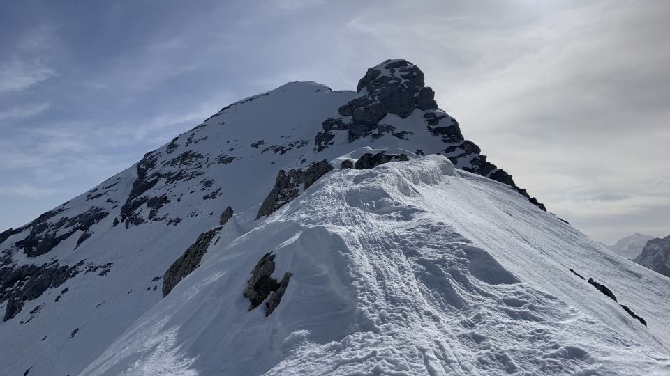 Gebürenpflichtig Richtung Würzi bis ca 1370 mit Auto. Danach ca 200 Hm Ski tragen. Ab Hütte genügend Schnee. Bis auf Gipfel gute Spur, hart aber ohne Harscheisen.