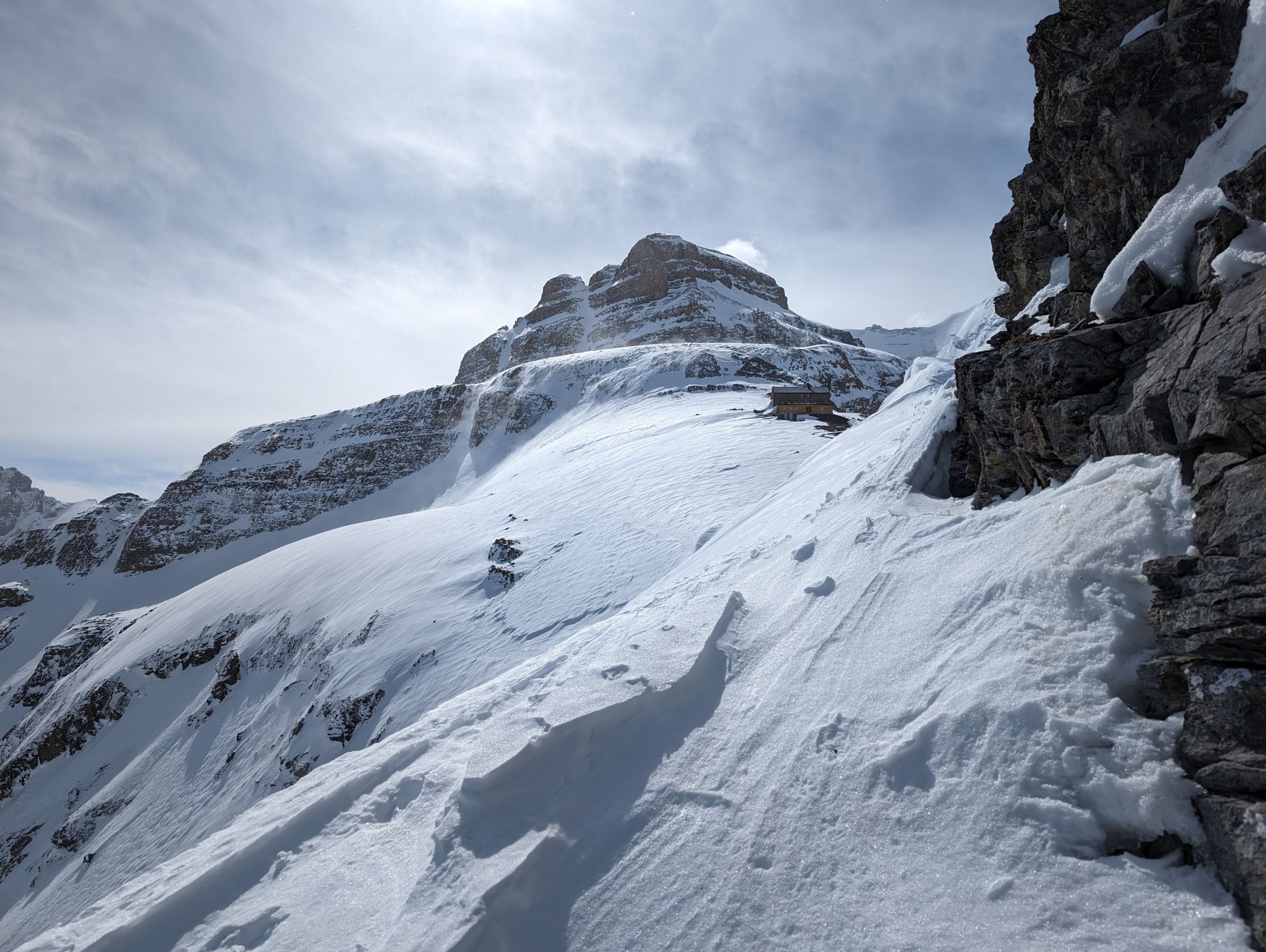 Start um 6.30 auf der Griesalp bei ca. 5°C. Skis müssen bis kurz vor Dündenessli P1463 getragen werden. Ab dort mit ein paar kurzen Tragpassagen genügend Schnee bis auf den Gipfel. Leider war die Abstrahlung bis fast auf den Gipfel sehr schlecht und der Wind hat auf den letzten paar höhenmeter mächtig aufgedreht. Auf der Abfahrt musste man oben die tragenden Stellen suchen. Unten gut drehbarer Plüterschnee.