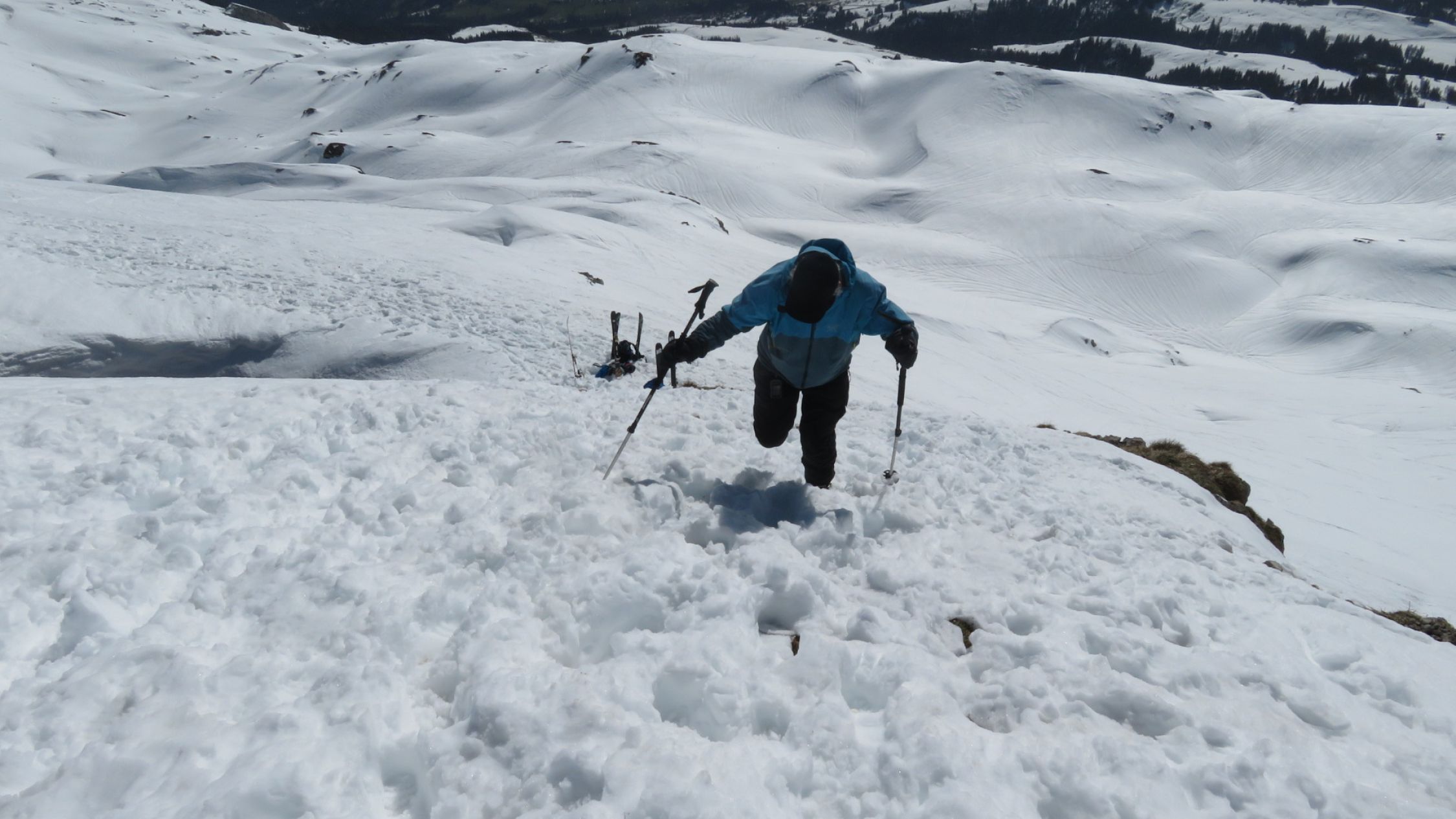 Wir sind ab Schlund gestartet. Die Strasse ist frei. Ab Schlund hat es noch genügend Schnee. Es hat eine gute Spur bis zum Gipfel. Abfahrt: Frühlingsschnee der aber gut zu fahren ist mit gutem Untergrund.
