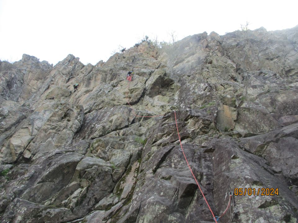 Wir sind erst gegen 11 an der Tannholzwand eingetroffen. Dennoch zeigte sich die Nordwand noch überwiegend feucht. Wir kletterten ein paar der einfacheren Routen in Sektor West. Dort war es überwiegend trocken, aber auch dort gab es noch die einen oder anderen nassen Schlieren.