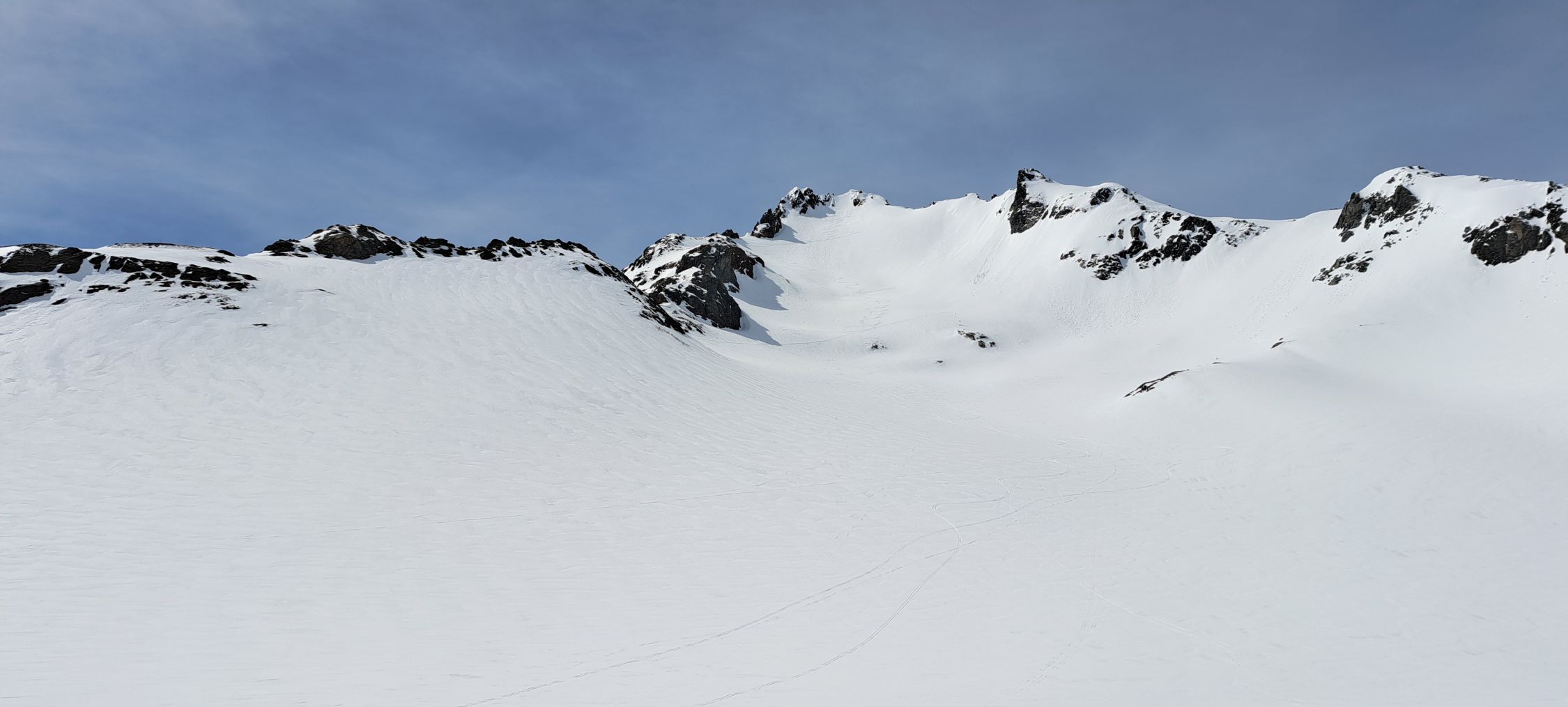 Start 5.30 Uhr. Ski tragen bis Bludenzer Alp (Kiesstrasse) (ca 300hm). Danach durchgehend Schnee. Bis ca 2000müm morgens eher nass da wenig Abstrahlung in der Nacht, aber gut zu gehen. Ab ca 2000müm hatte es ein Pulverschäumli (5-10cm). Führte beim Aufstieg zu Stollenbildung, bei Abfahrt war der Pulver teilweise schon verfirnt. Schön zu fahren, bis dann unterhalb 1800-2000müm Bremsschnee kam. Wetter in Vorarlberg tiptop, nachmittags kamen dann leichte Schleier auf. Abfahrt Gipfel 10.45 Uhr, hat gut gepasst. Für Gipfelaufschwung waren wir froh um Steigeisen. Keine anderen Leute im Gebiet unterwegs.