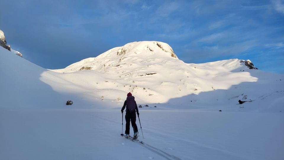 Iffigenalp ist schneefrei, bis einige 100m nach der Bachquerung 1646m müssen die Ski getragen werden. Durchgehende Schneedecke schattseitig ab ca. 1700m, nach dem grossen Lawinen-/Geröllzug vom Mittaghorn. Gefrorener, knapp tragender Deckel mit wenigen cm Neuschnee. Mit der Höhe zunehmend Neuschnee, je nach Expo mehr oder weniger Wind geprägt, max. 10cm. Nur an den steileren Passagen etwas mühsam wo der Neuschnee auf der harten Unterlage rutscht, trotzdem alles gut ohne Harsteisen machbar.