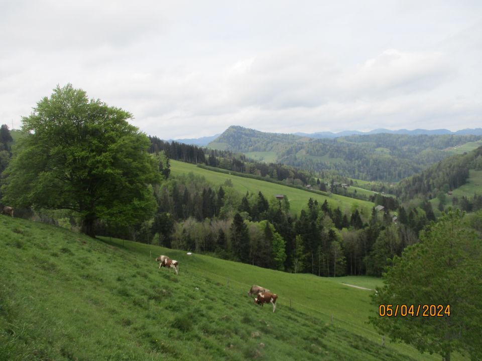 Wunderschöne und auch abwechlungsreiche Voralpenidylle auf dem Neckertaler Höhenweg. Besonders in der ersten Etappe sind aber einige Asphaltkilometer dabei. Dann einfach das Augenmerk auf die blühenden Wiesen grasenden Kühe und die stattlichen Appenzeller Höfe am Wege richten.