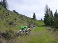 Am Gipfel begegnete uns ein Wanderer, der Richtung Schermsteinalm abstieg. An der Bayreuther Hütte waren bereits Eröffnungsarbeiten zugange von einem Pickup-Fahrer mit GAP-Kennzeichen. 4 MTB-Fahrer besuchten die Hütte über die Schotterpiste kommend und abfahrend.