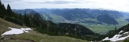 Panorama-Berg mit Sicht über das Rofangebirge im Nordwesten und zum Wilden und Zahmen Kaiser im Osten.