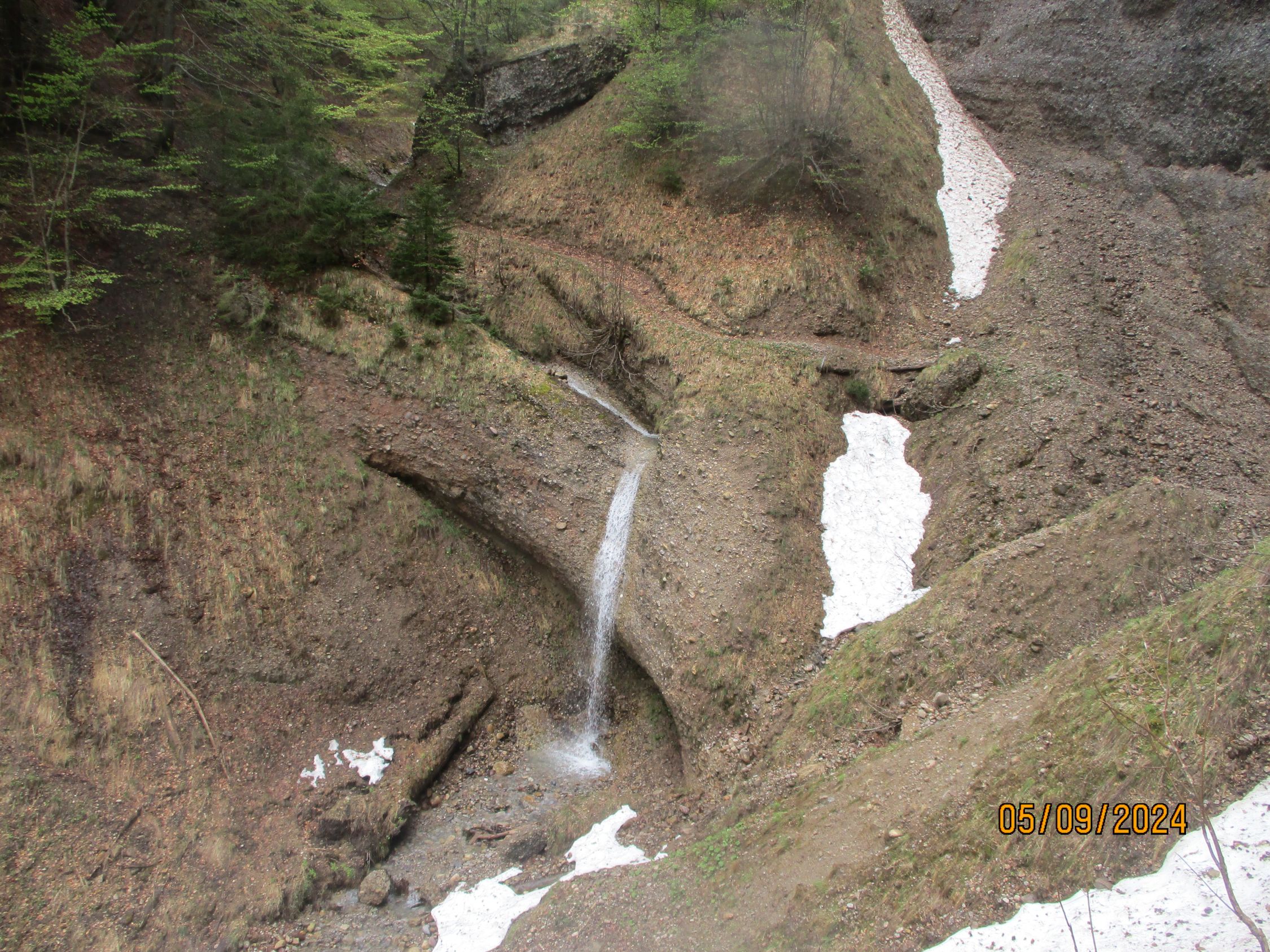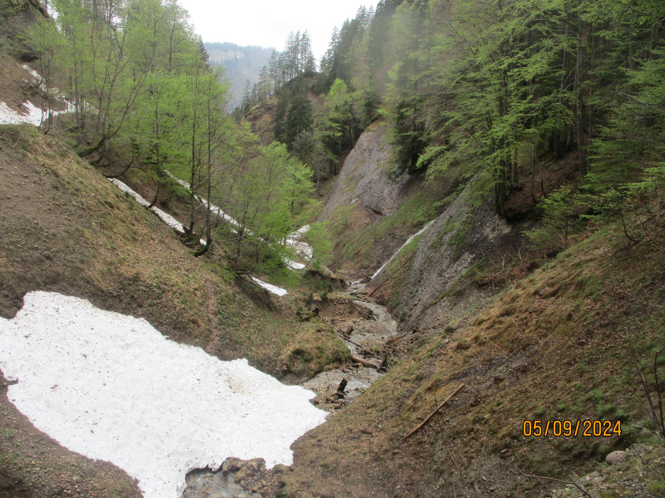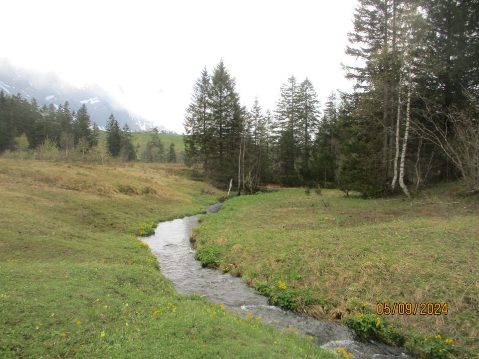 Alles schneefrei, aber häufig recht matschig - keine Ausrutscher im Ofenloch erlaubt! Aufgrund zäh sich haltender Restbewölkung eingeschränkte Aussicht. sämtliche Alpsteingipfel verblieben im Gewölk, nur die Flanken waren zu sehen.