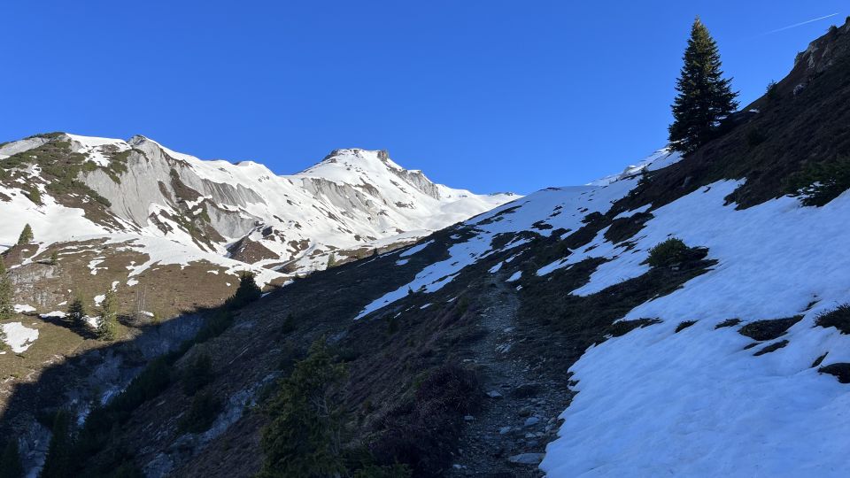 Ab hier mehrheitlich Schnee auf dem Alpweg.