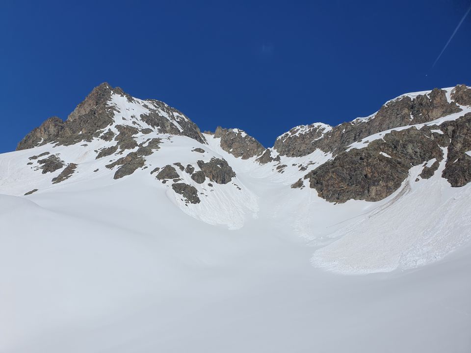 Ich war letztes Jahr im Sommer hier oben und das Couloir, den ich für den Abstieg gewählt hatte, wollte ich unbedingt mal mit den Skis abfahren.