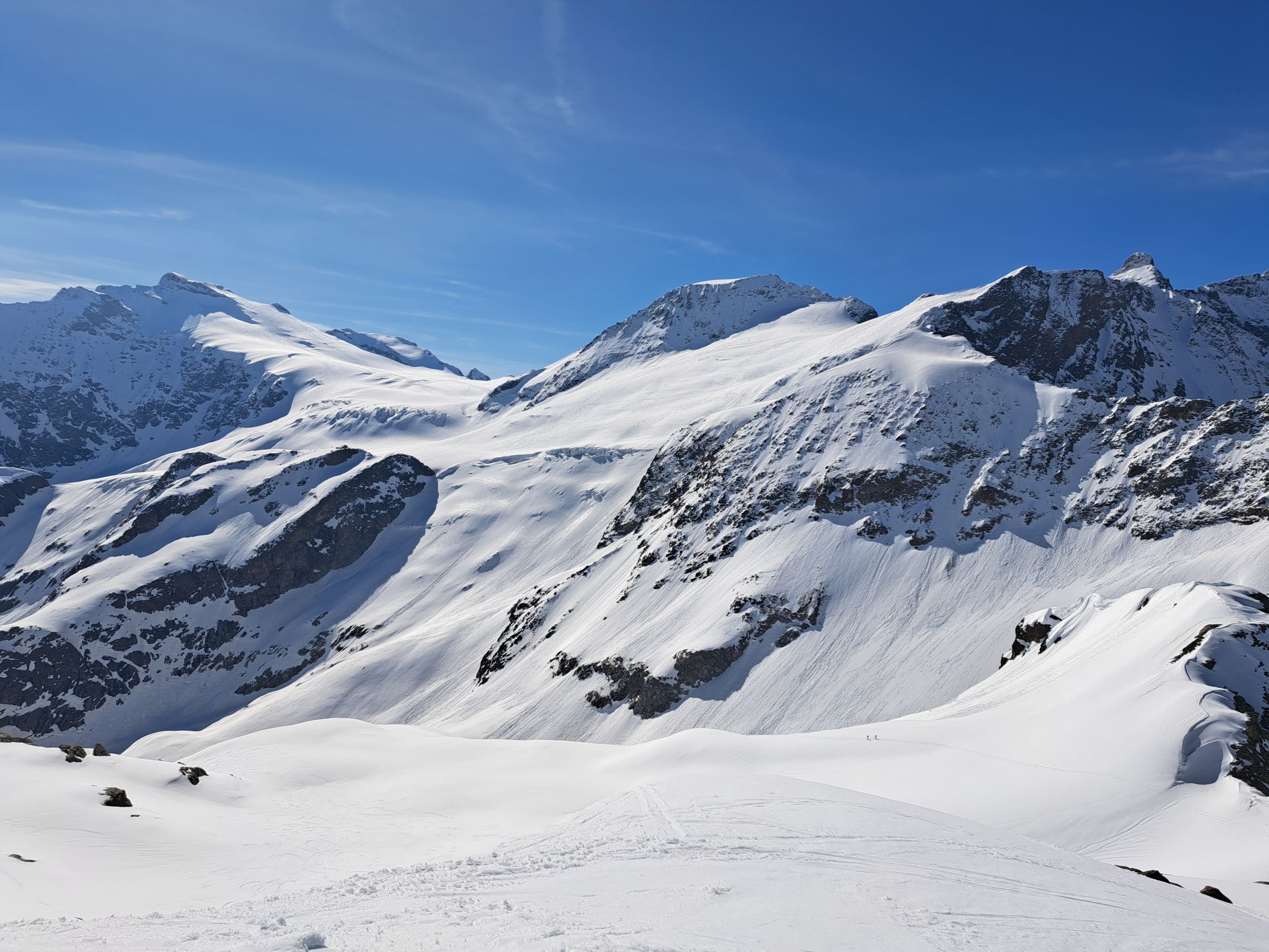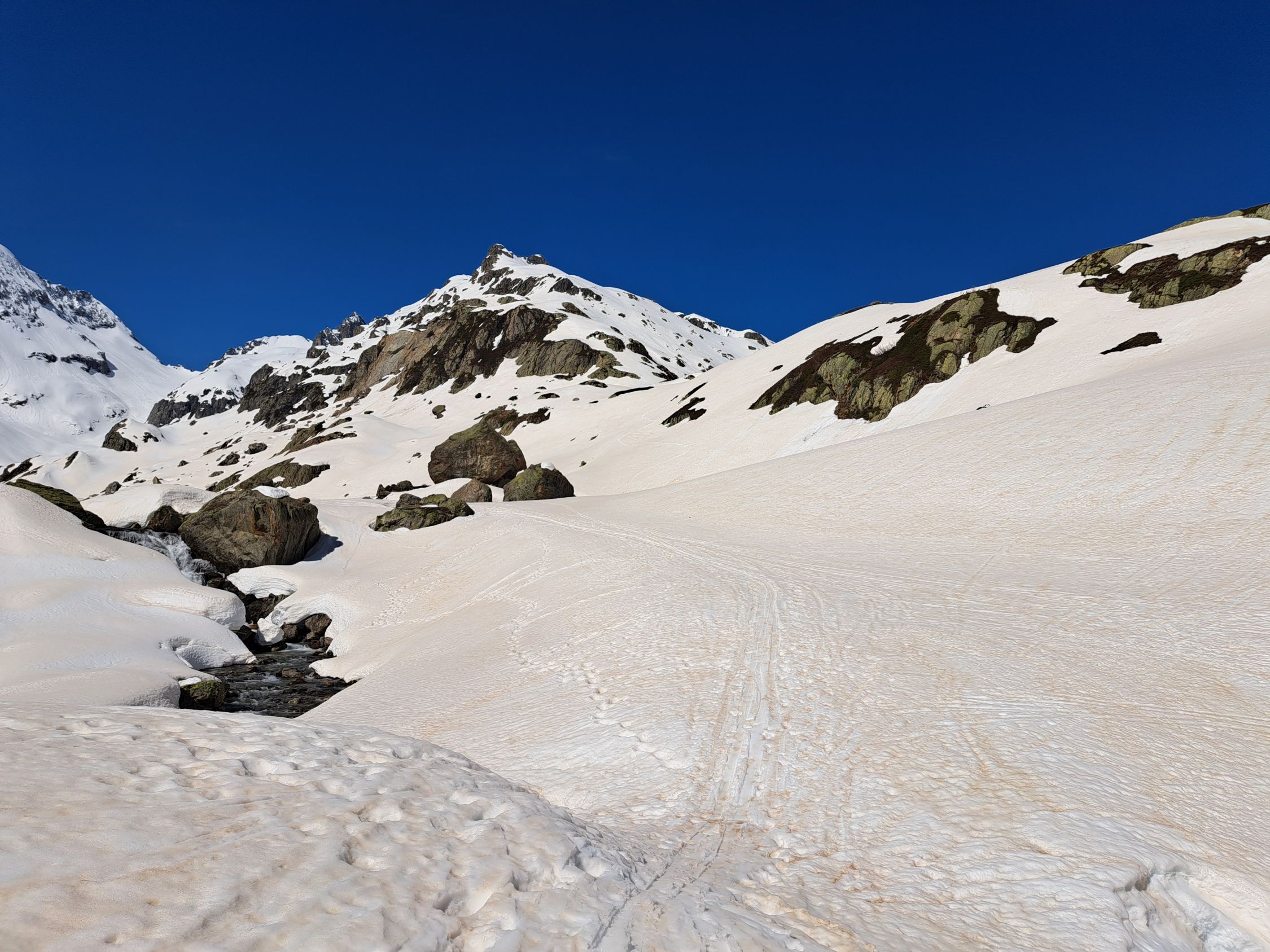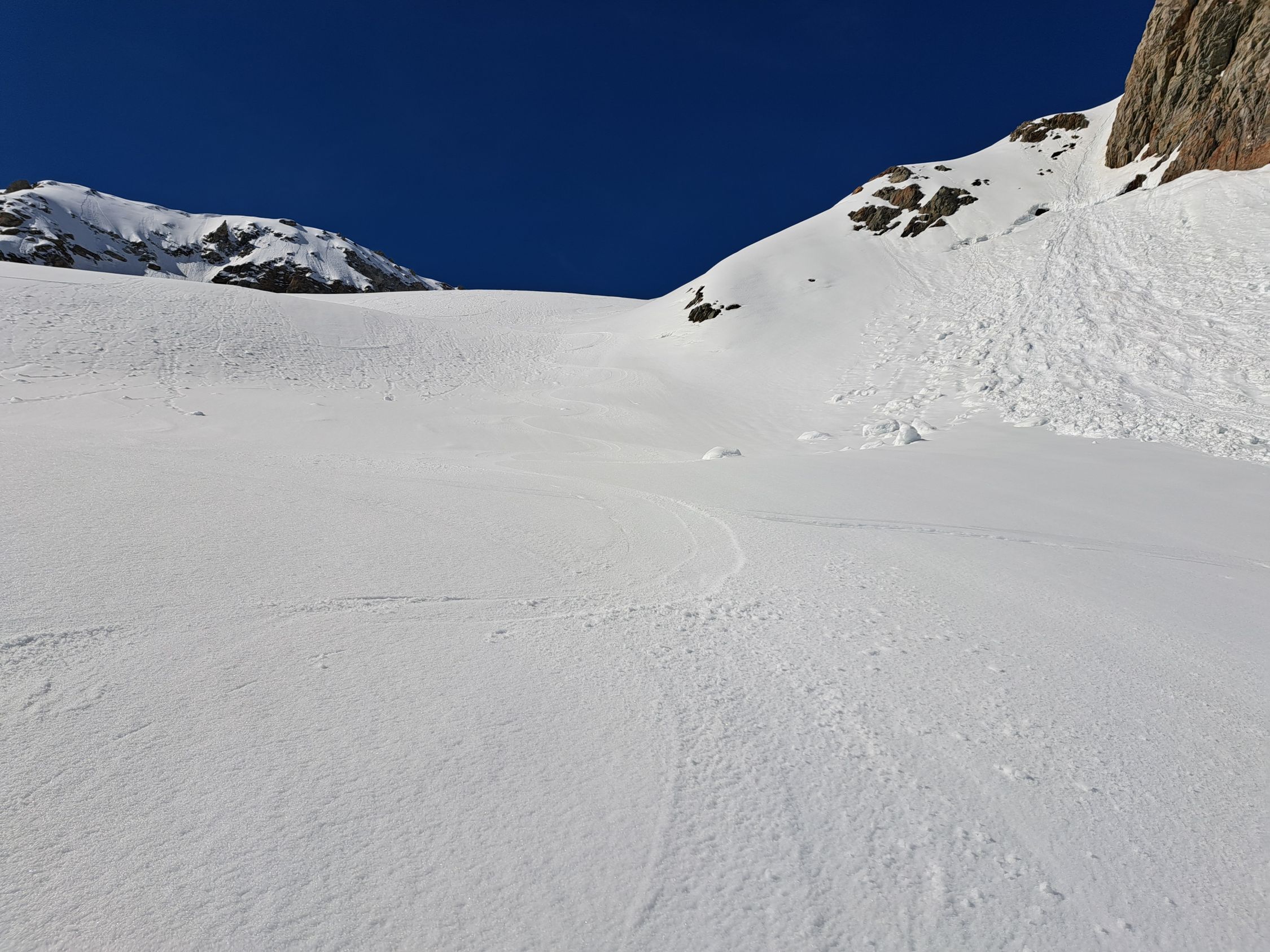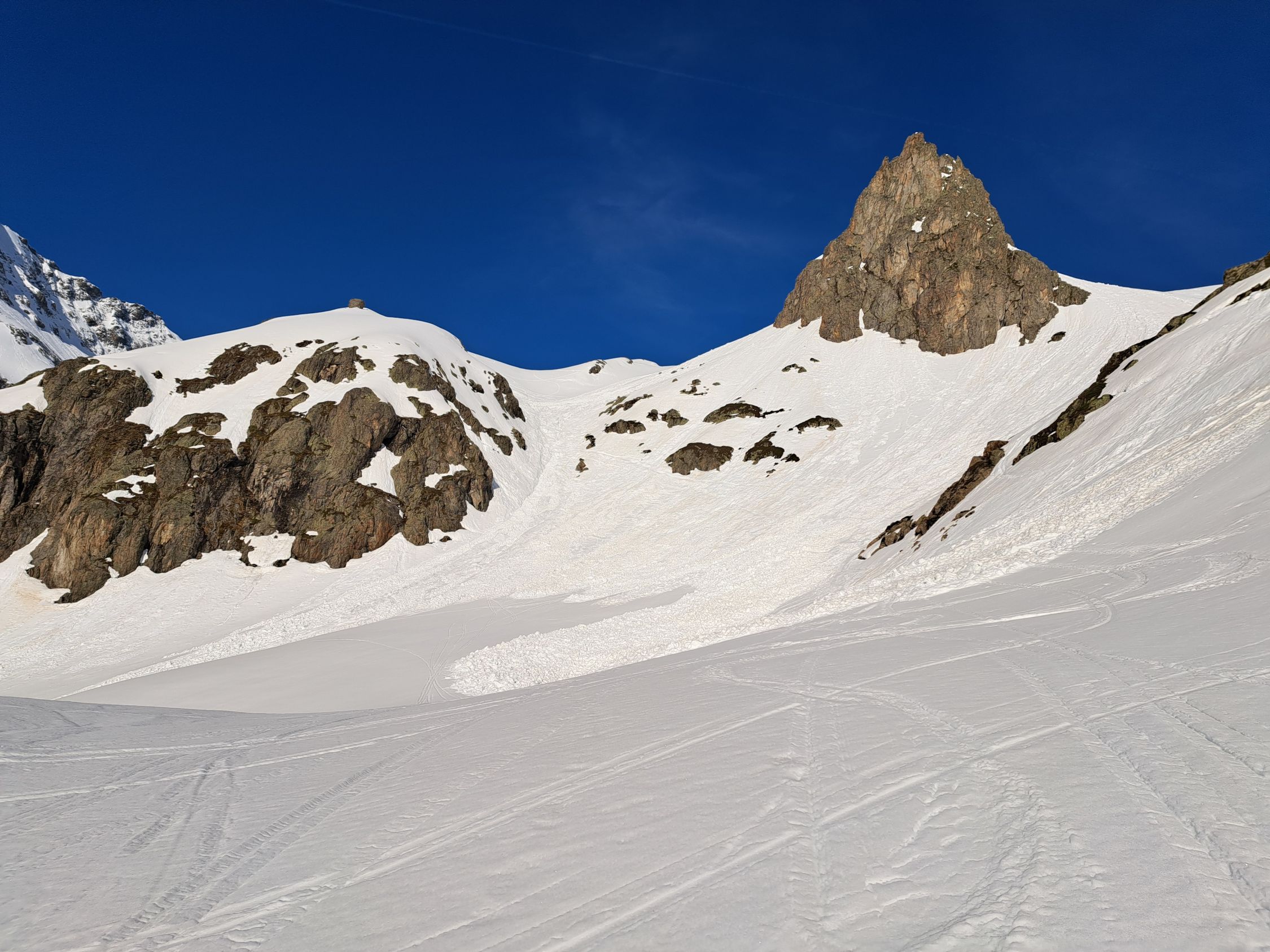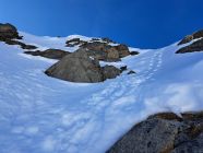 Da hat es zwar viele Lawinekegel zu bewältigen,ging aber trotzdem besser als vom Steilimigletscher über die Schlüßelstelle wo Tanja zwei kletterer Türeler gesagt haben es war nicht einfach.