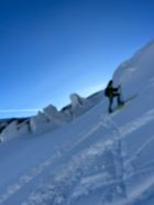 Start um 3:30 war am heutigen Tag mit super nächtlicher Abstrahlung im grosszügigen Zeitrahmen ohne in zeitlichen Stress zu geraten. Gipfel vor 12 Uhr erreicht. Aufstieg mühselig, da es zum grossen Teil keine Aufstiegsspur gab. Dafür entschädigte die Abfahrt mit Freudenjauchzer. Gletscher war besser eingeschneit als bei meinen letzten Piz Bernina Besuch im April 2018. Wer weiss wann die Bedingungen wieder so gut sind. Seil war nicht nötig. Aber wenn wir es schon dabei hatten, nutzten wir es an einem ausgesetzten Felsaufbau am Spallagrat beim Gipfelabstieg.