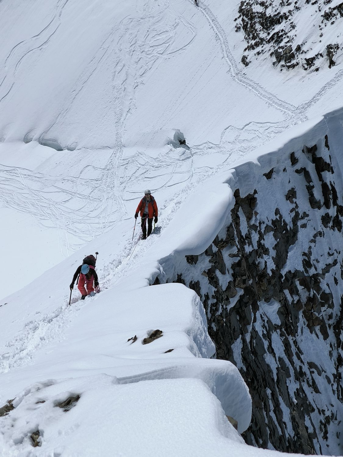 Gratulation an meine 2 Mitgeher, deren erster 4000er spontan eine Tagestour ohne Vorbereitung und ohne Nutzung/Hilfe gewisser Infrastruktur wie Hütte oder Seilbahn ist. Sowie ich es halt auch mag. Wie man die Tour als "Neuling" überlebt: "Just enough juice for the descent after skinning up Piz Bernina from Morteratsch ?⛽️ good thing the Aldi in Samedan is open till 19h #aldisavedmylife". In der Bescheidenheit liegt die Stärke.....