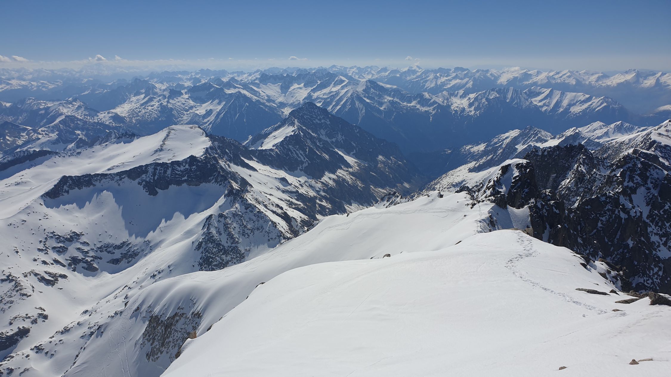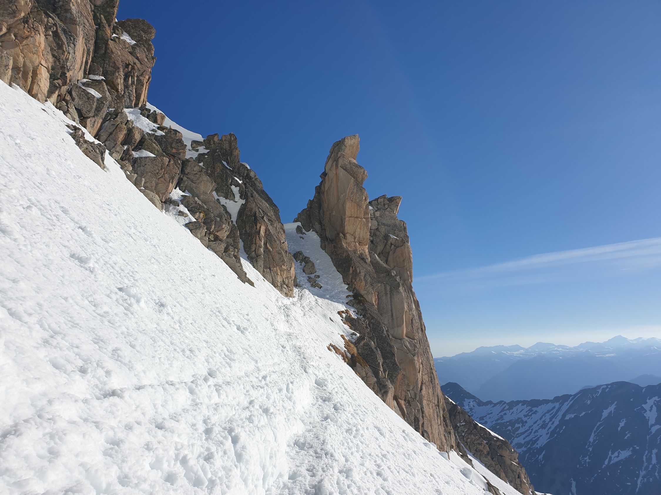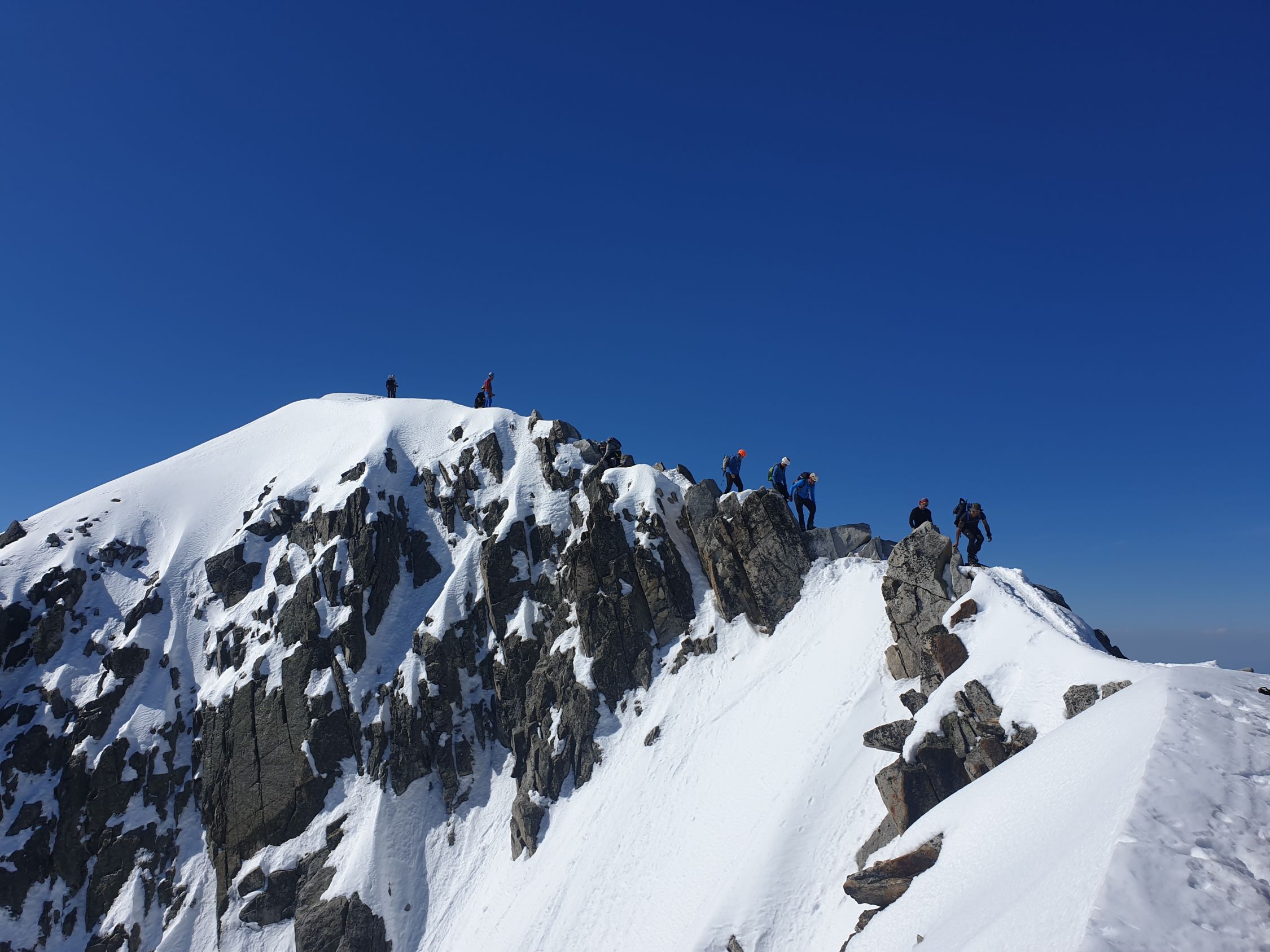 Der Gipfelgrat ist technisch einfach und kurz. Heute waren weder Steigeisen noch Pickel notwendig.