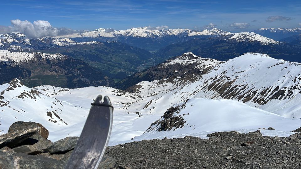 Fazit: Für mich immer die Krone der Frühlingssaison. Einsame Gegend mit phantastischer Aussicht. Musste ich gestern am Tschep mit Abfahrt um 10.15 Uhr um den Schlusshang bangen, war heute bei dieser nördlich ausgerichteten Abfahrt keinerlei Eile angesagt.