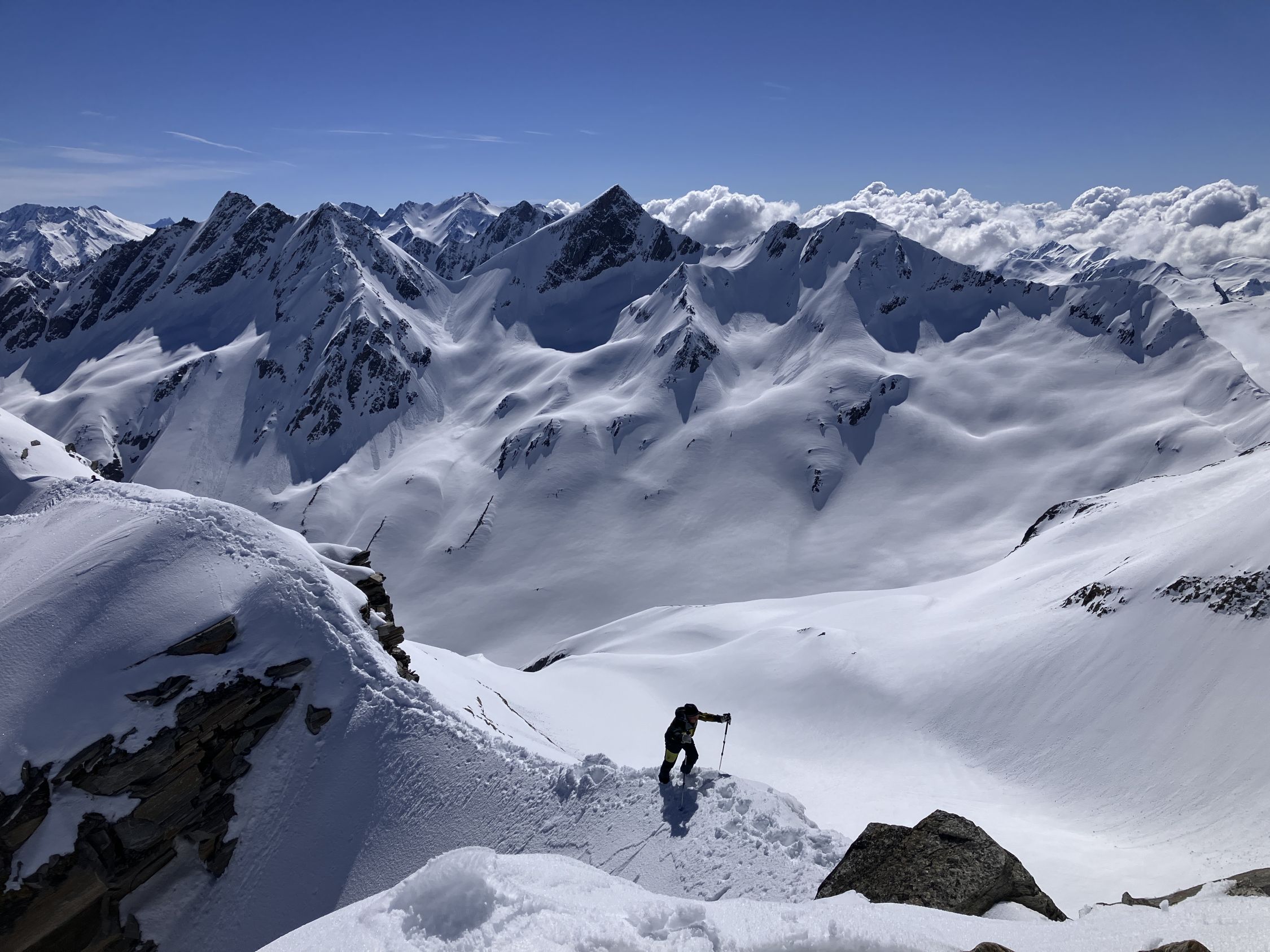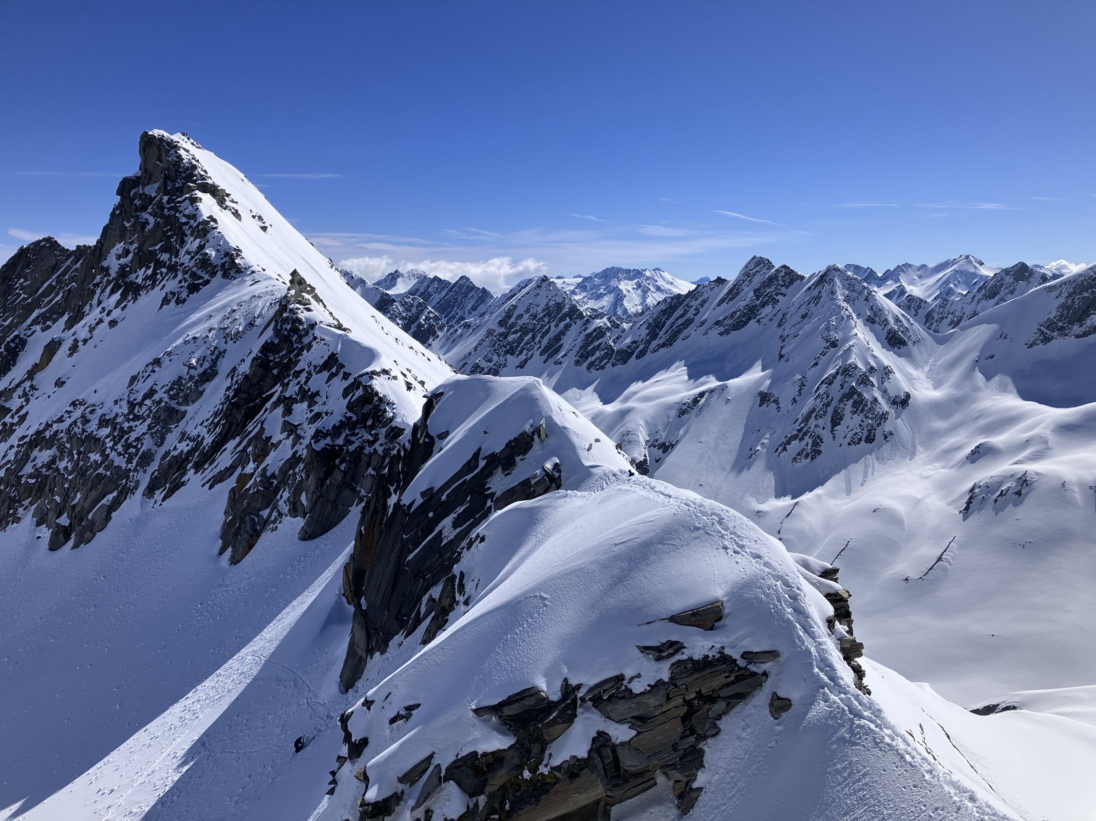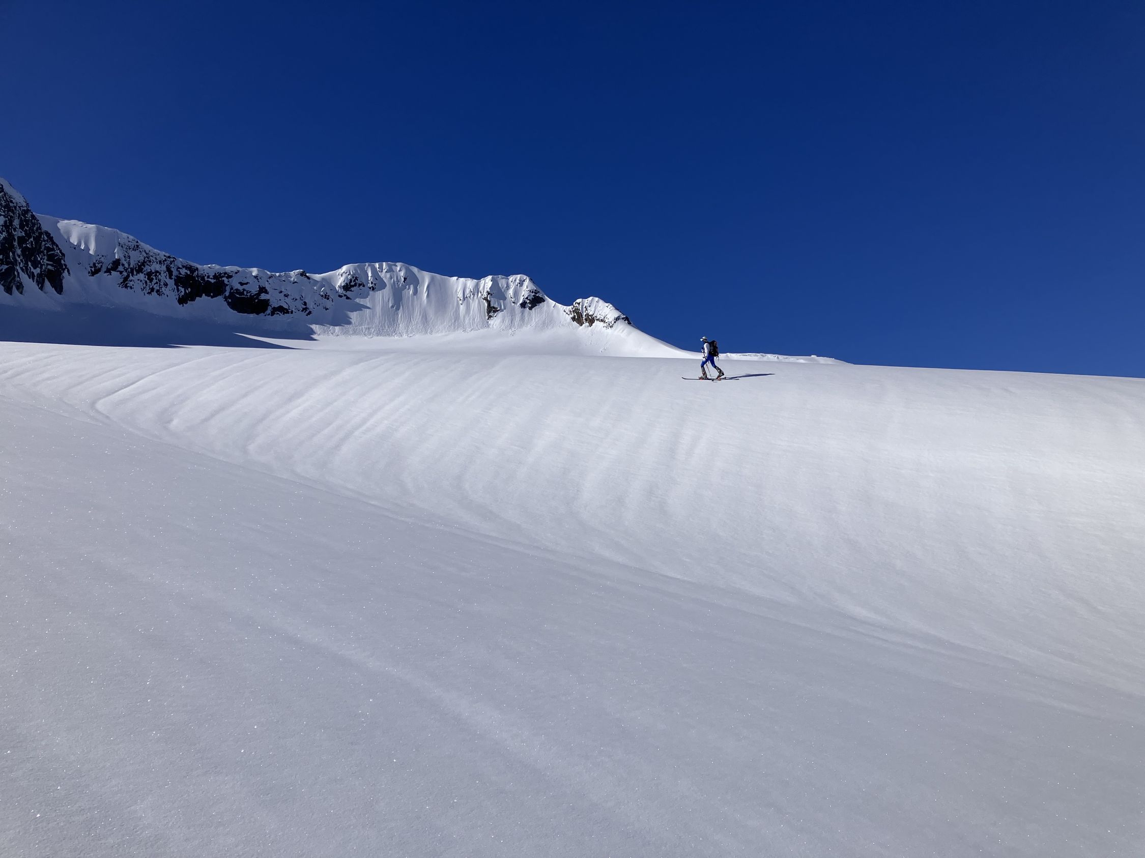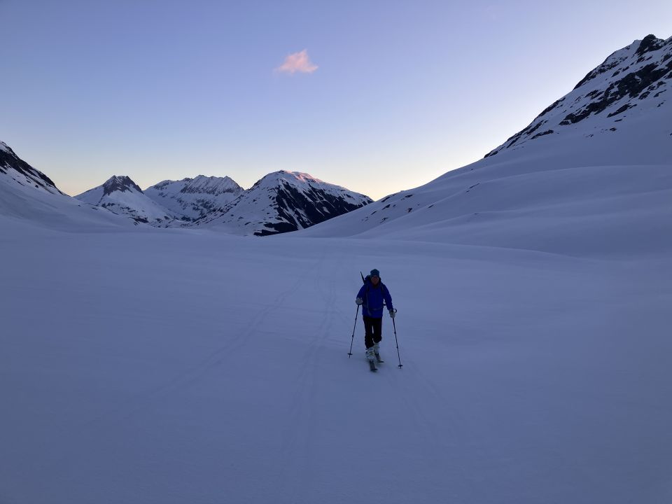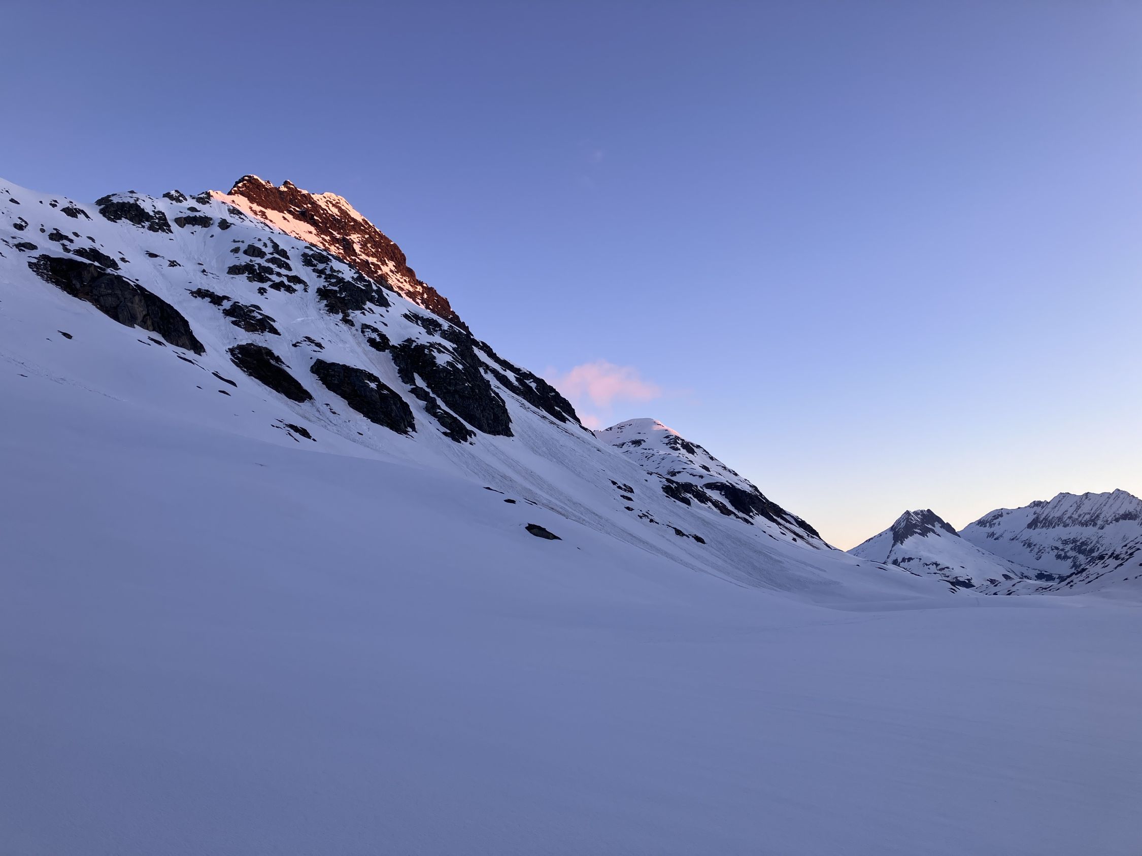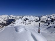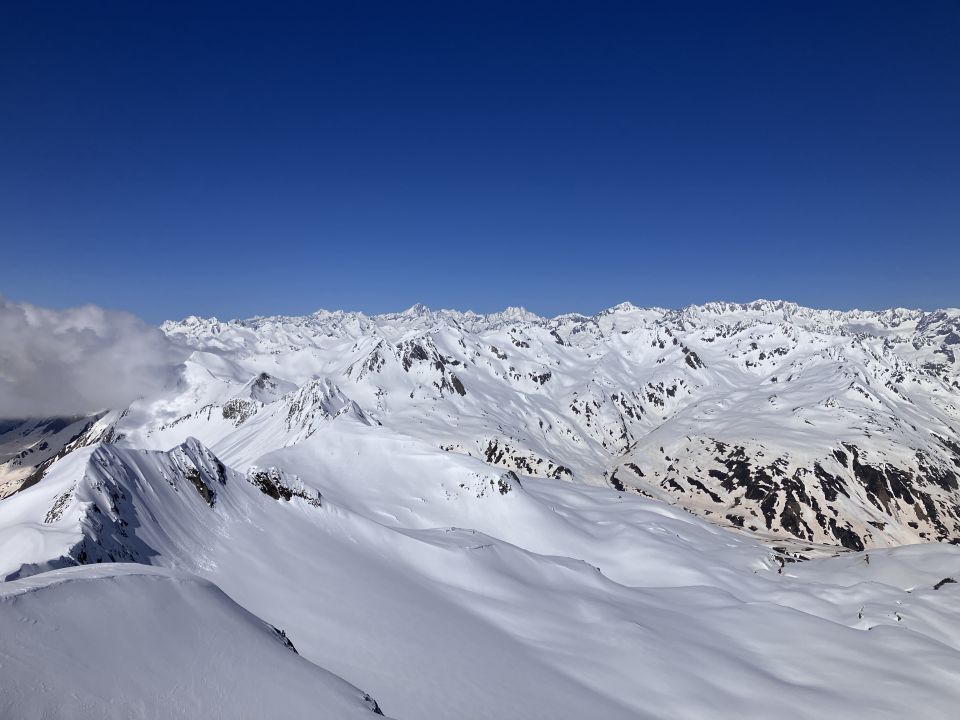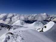 Start Maighelshütte um fünf, erst zum Piz. Alv mit klasse Abfahrt um 8:00 Uhr. Dann Wiederaufstieg ab ca 2400 m zum Piz Borel. Wie am Morgen hier auf Grund der Exposition Aufstieg noch bretthart. Gute Spur zum Gipfel, Steigeisen angenehm, ging aber auch ohne. Piz Ravetsch wurde auch gemacht. Abfahrt ab ca 10:45 Uhr ideale Firnverhältnisse.