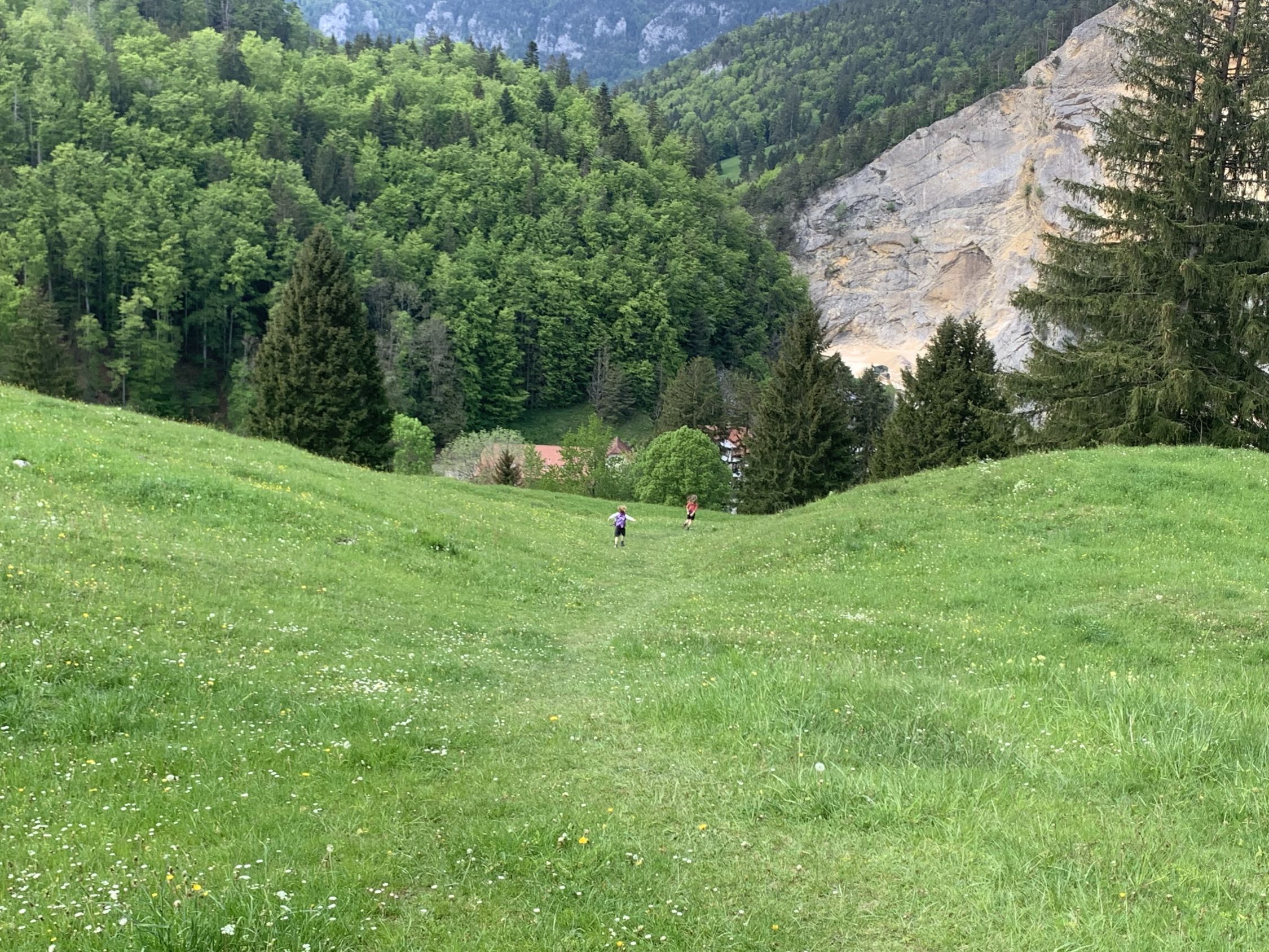 Gestern Erwachsenenprogramm am Grand Combin, heute Kinderprogramm am Dilitschkopf. Seil&Gstältli blieben heute im Rucksack, die Kids machten ihre Sache gut. Alle Felsaufschwünge wurden überklettert, was die Tour in den T4 Bereich bringt. Die Kids hatten ihre Riesenfreude. Fantastische Bewirtung im Restaurant Hinter Weissenstein, zum Schluss konnte dann auch noch die Pilzsaison mit einer ergiebigen Maipilz-Fundstelle eröffnet werden.