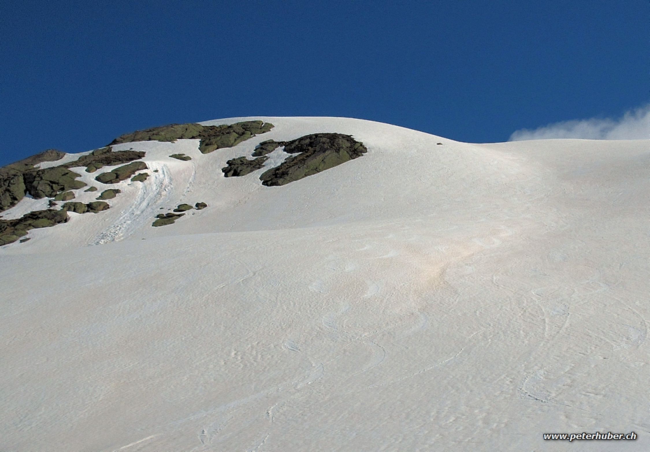 2. Aufstieg zur Gratlücke (=Wäschchuchi) südlich P 2771. Da war der Schnee schon recht aufgesulzt, aber gut machbar.