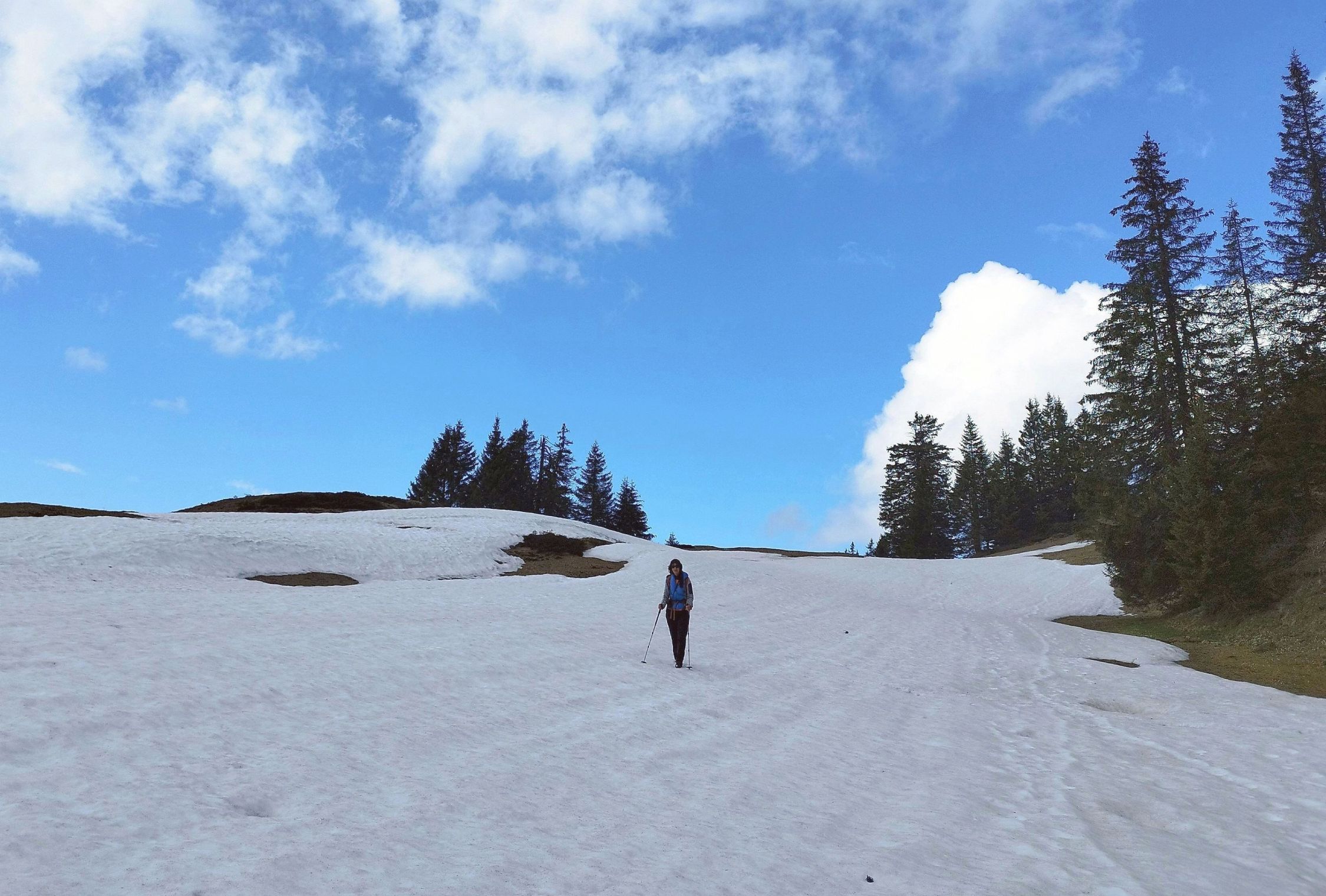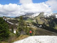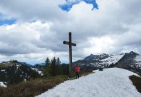 Wege nach nächtlichem Regen teils feucht; da unschwieriges Gelände, aber unproblematisch. Etwas Schnee noch am Fürkle und am Nordgrat des Falben, hier jedoch weich und mit Trittspuren. Alles gut begehbar.
