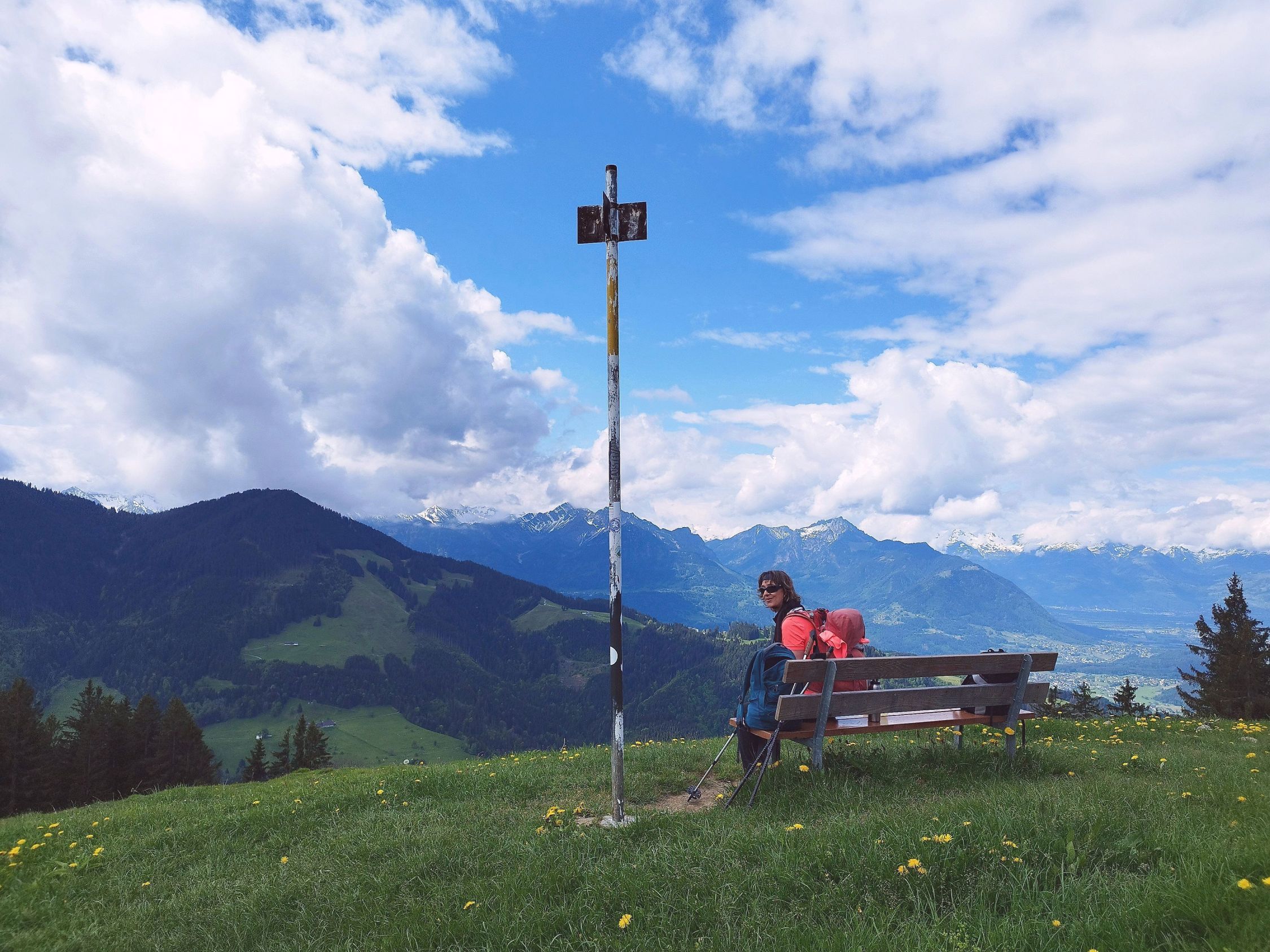 Beim Start und ab Mittag ziemlich bewölkt und höhere Berge in Quellwolken, daher nicht allzu viel Fernsicht. Dazwischen aber auch blauer Himmel und angenehm warm. Für Sonntag erstaunlich wenig Betrieb.