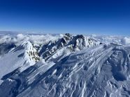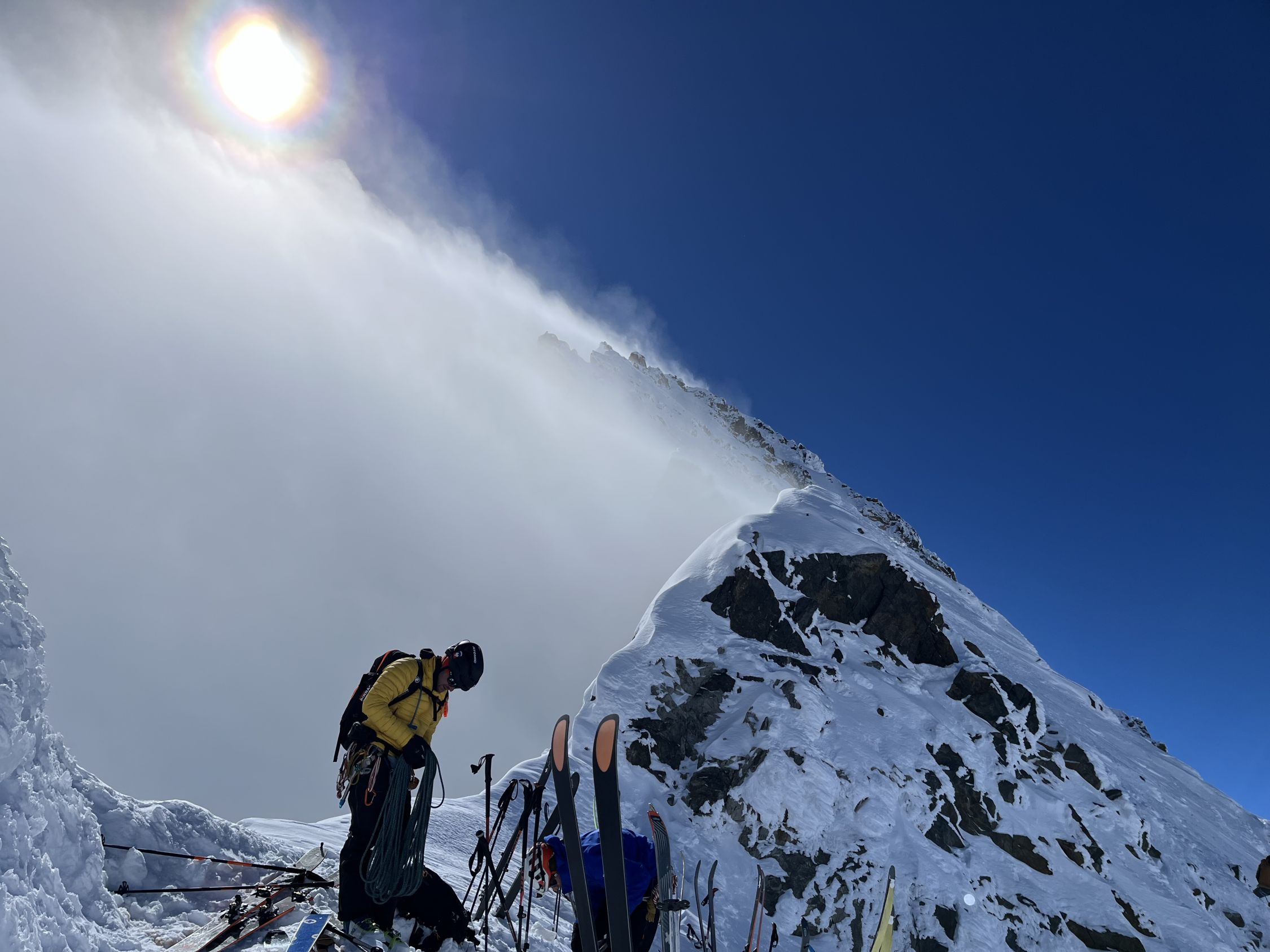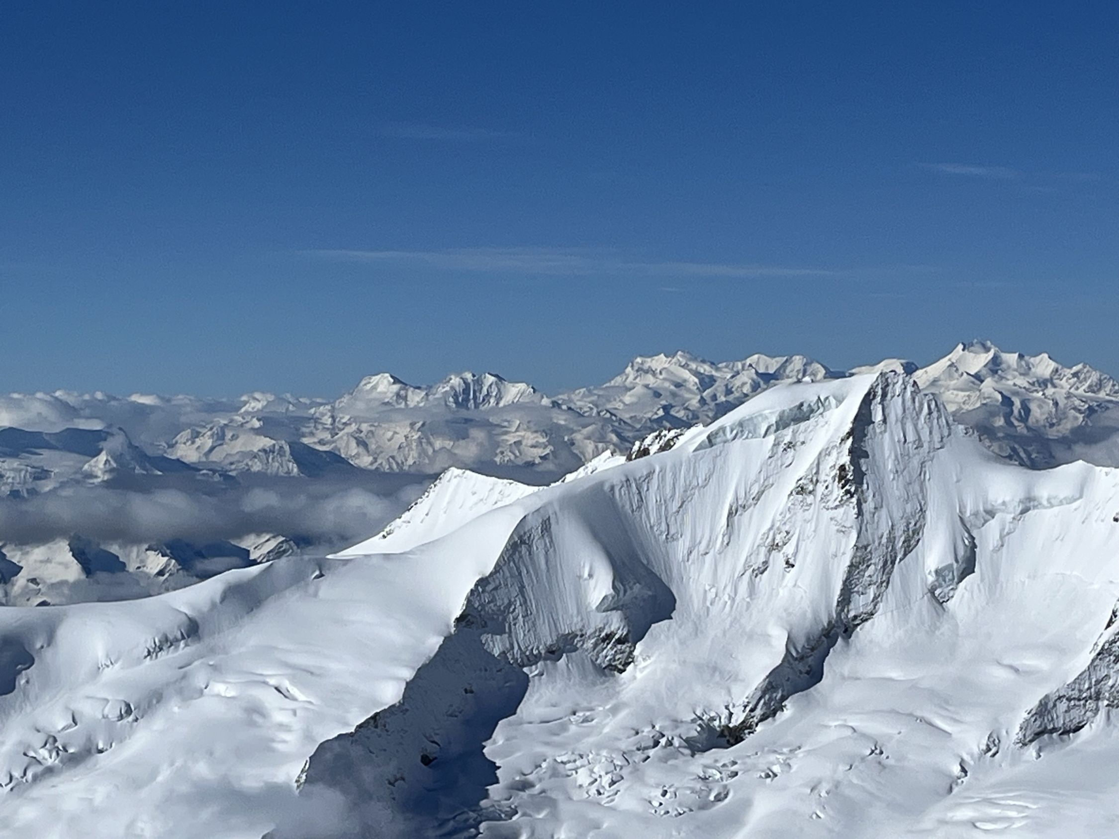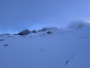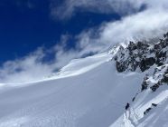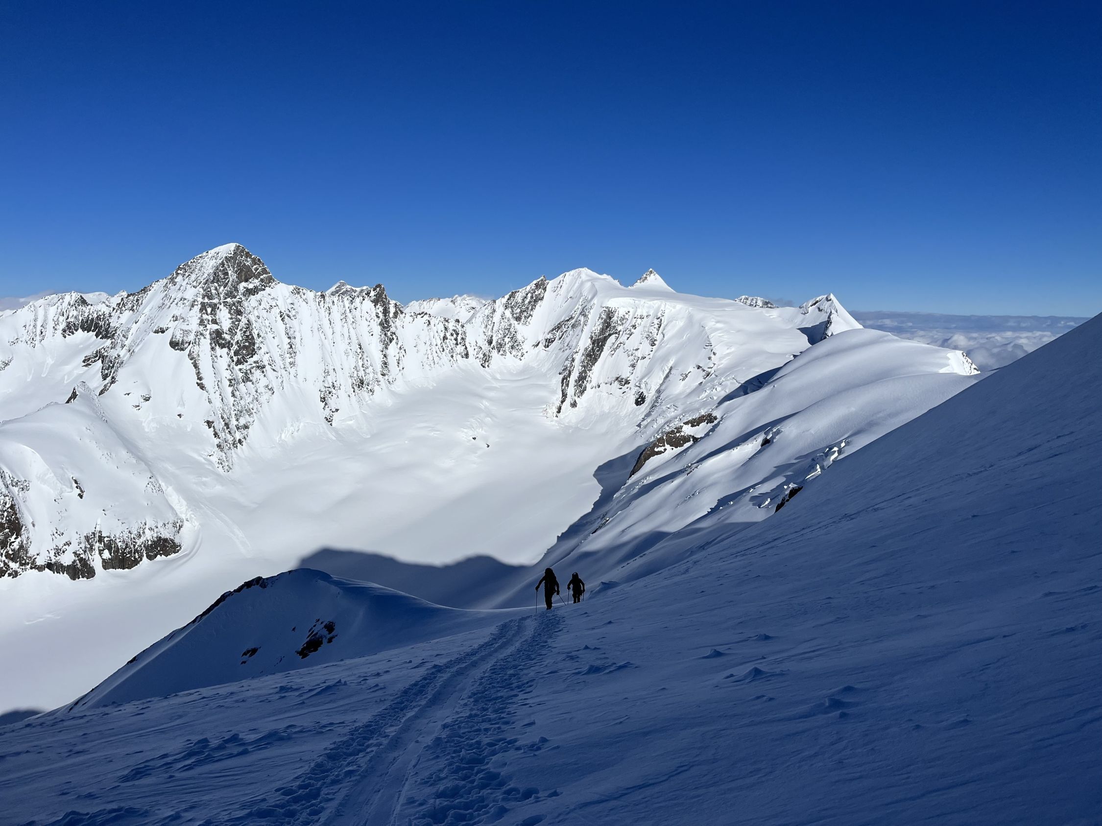 Start um 5:30 von der Finsteraarhornhütte im letzten Drittel der ca. 60 Gipfelaspiranten. Es hatte eine gute Spur, griffiger Pulver auf Hartschnee, mit Ski keine Harscheisen bis Hugisattel nötig, auch Gratüberquerung 3616m war einfach mit Ski machbar, am Skidepot um 8:50. Viele Bergsteiger bereits im Auf und Abstieg. Am Gipfegrat guter Spur im Pulver, an der Felsen jedoch Schnee teils nicht ganz Trittfest/ schon abgerutscht. Es war kalt und windig, Finger leider ständig eingefroren, weshalb wir leider Umkehren mussten, tja. Frühe Abfahrt dafür in wenig verspurten Pulver mit Board sehr genussreich.