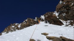 Gute Verhältnisse in der Monte Rosa Ostwand trotz der warmen Nacht. Firn in Bereich des Linceul noch griffig.