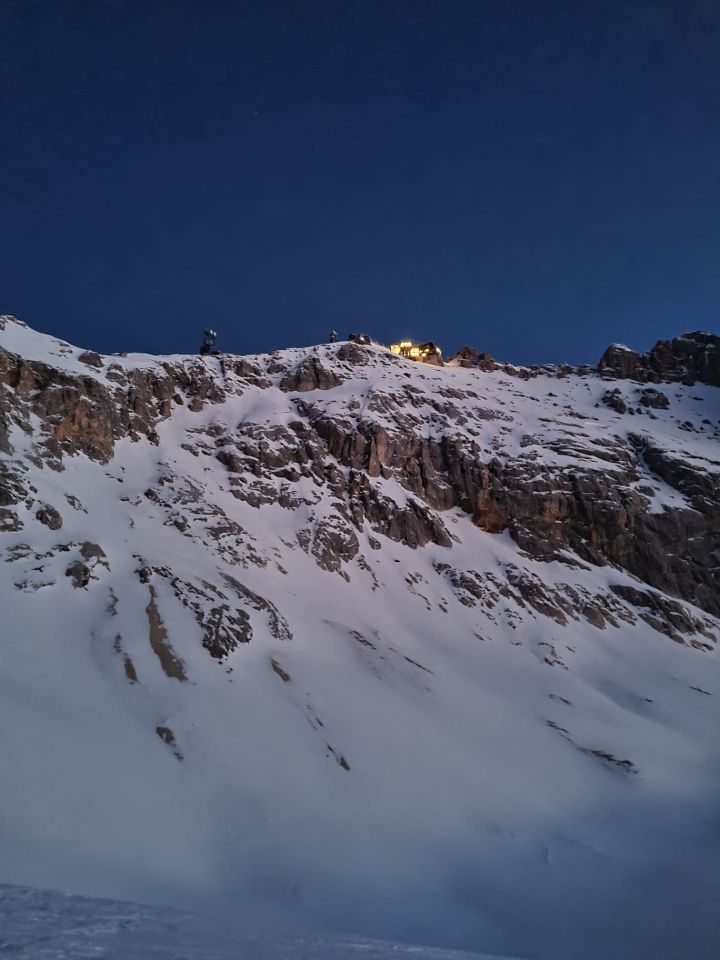 Ab dem Sonnalpin dann noch einige Hm in Spitzkehren hoch und dann Ski Schultern.