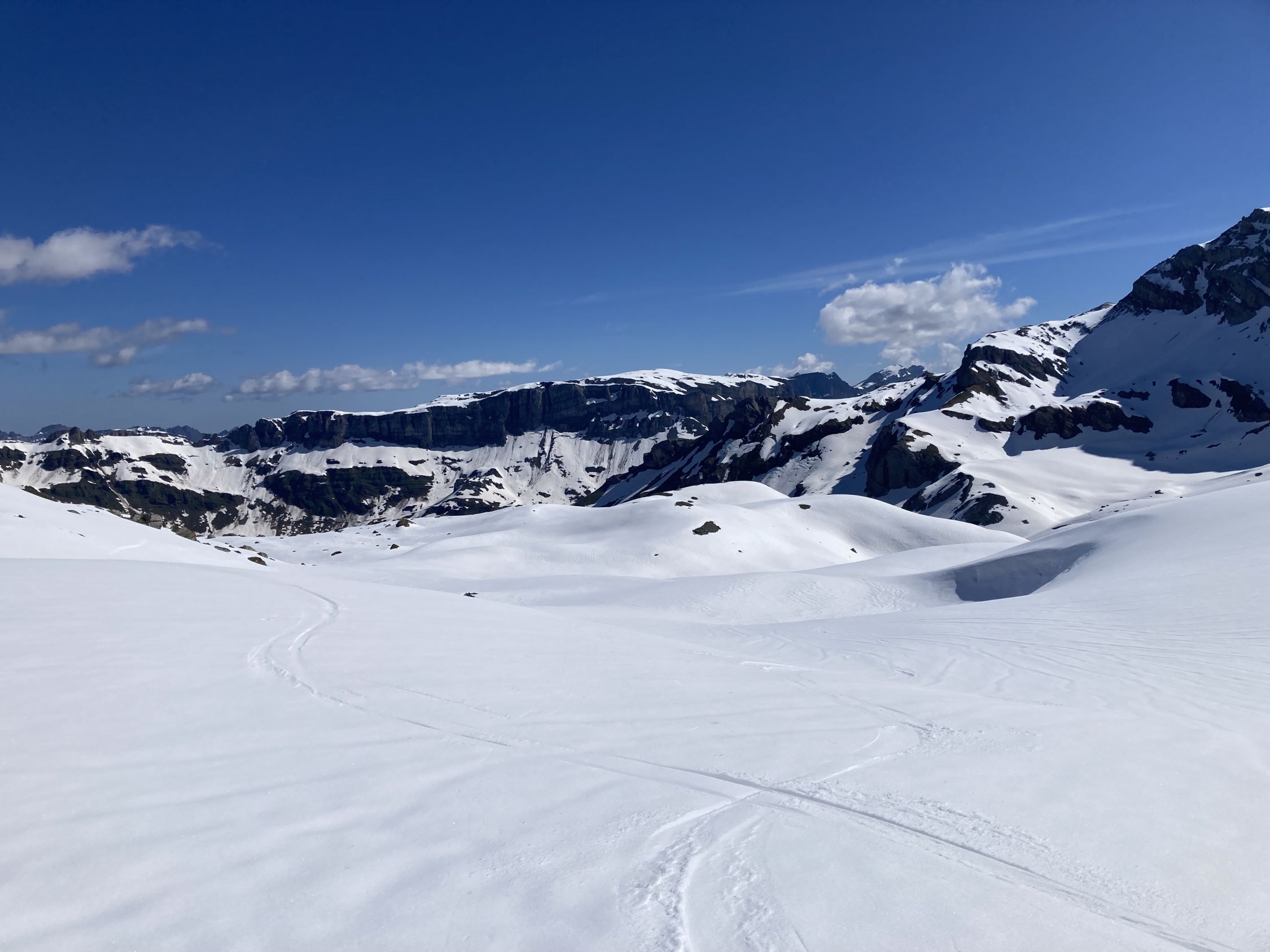 Ich steuerte den Vorder Griessstock an - dort Abfahrt um 09:30 Uhr, ca. 15 - 30 Minuten früher wäre perfekter gewesen, es war dennoch ein Firnträumchen.