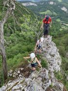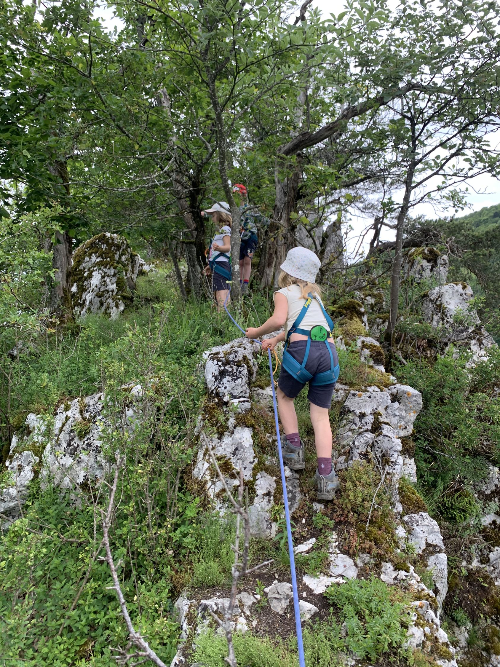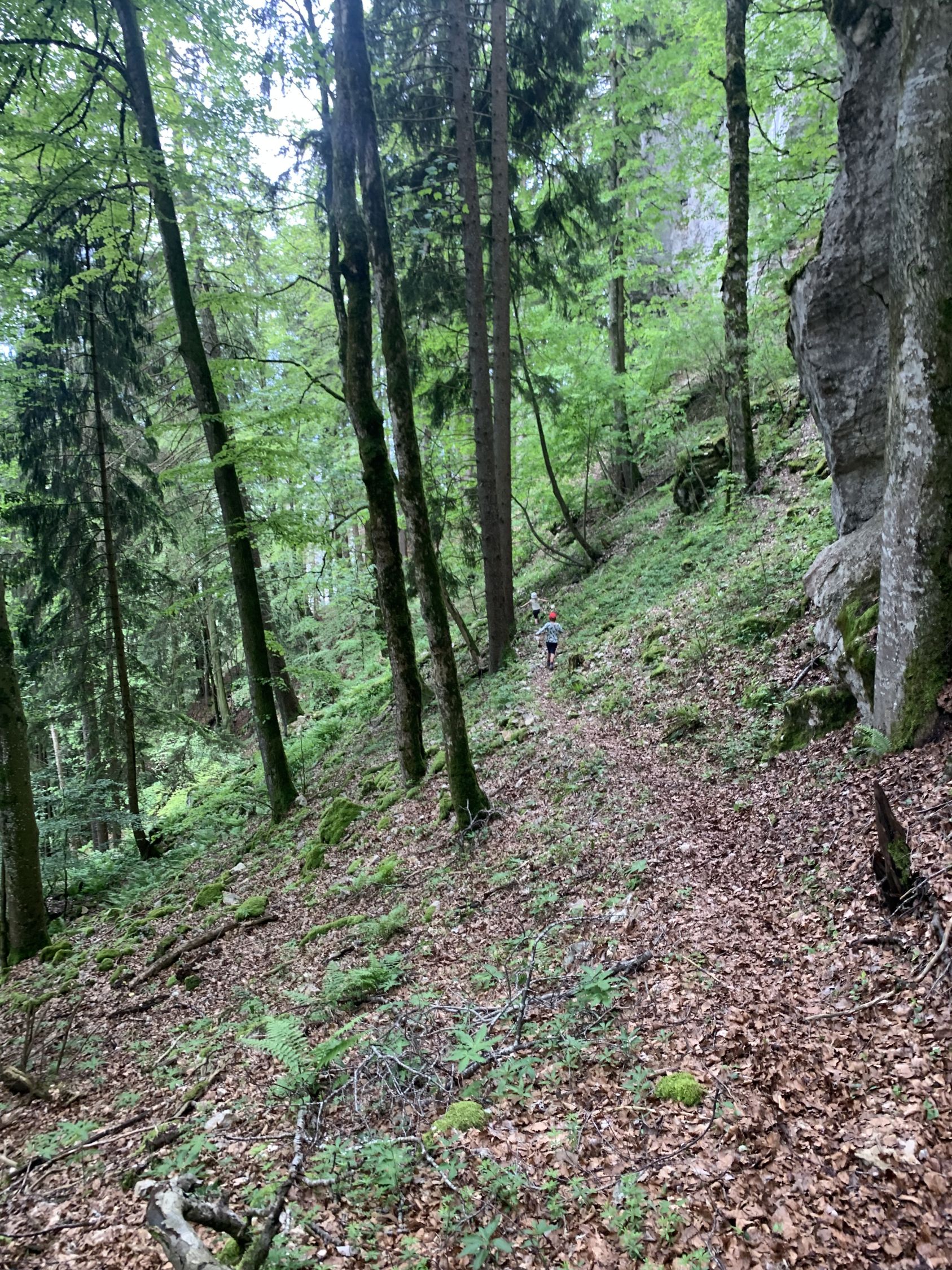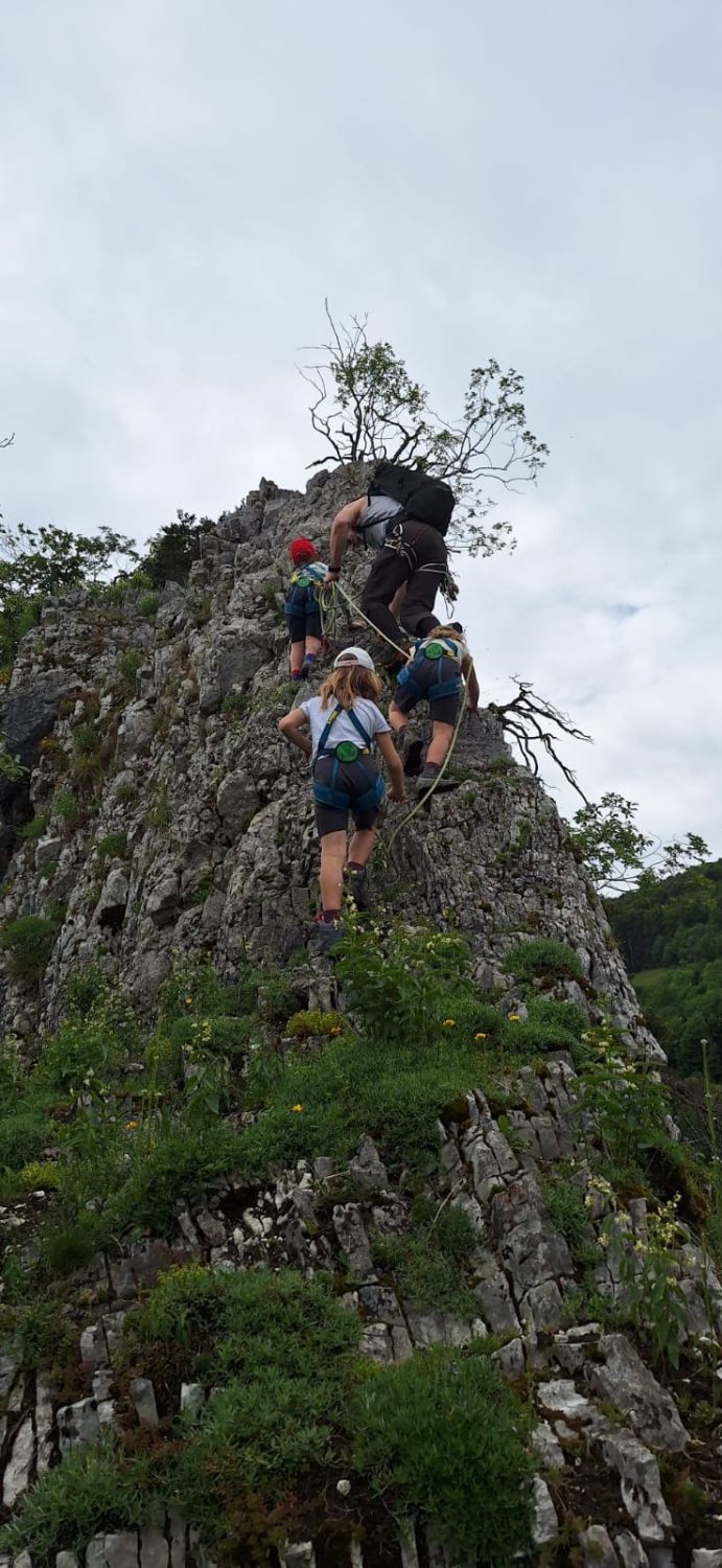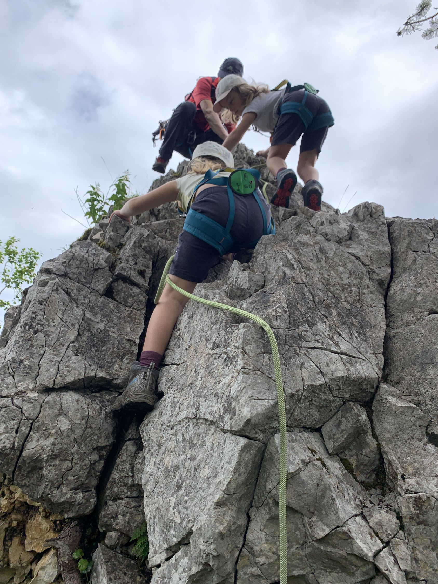 T5 Kraxelei mit Kids. Der schmale, exponierte Grataufschwung (T5/II-) ging noch gut am kurzen Seil, auch die Abkletterstelle war gut machbar für die Kids. Schwierig ist der Klemmblock, da die Stelle trittarm ist, abdrängend und einen langen Zug erfordert (persönlich würde ich das mit 3a-b bewerten). Für Kinder mit kurzer Armspanne kaum kletterbar. Dank des vorher eingezogenen Fixseils und Sicherung der Kinder einzeln mit Prusik sowie Dieter's Unterstützung von unten ging's dann recht ordentlich. Gutes Essen auf der Schwengimatt. Eindrückliche Beladonna Stauden und urwaldartiger Abstieg durch die Wanneflue.