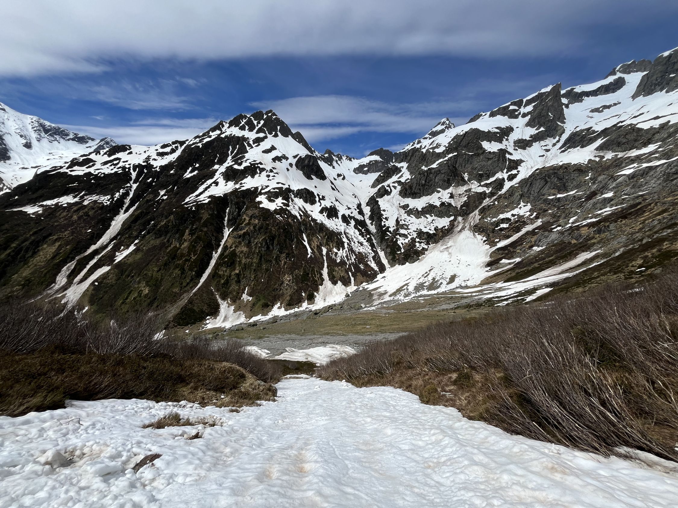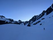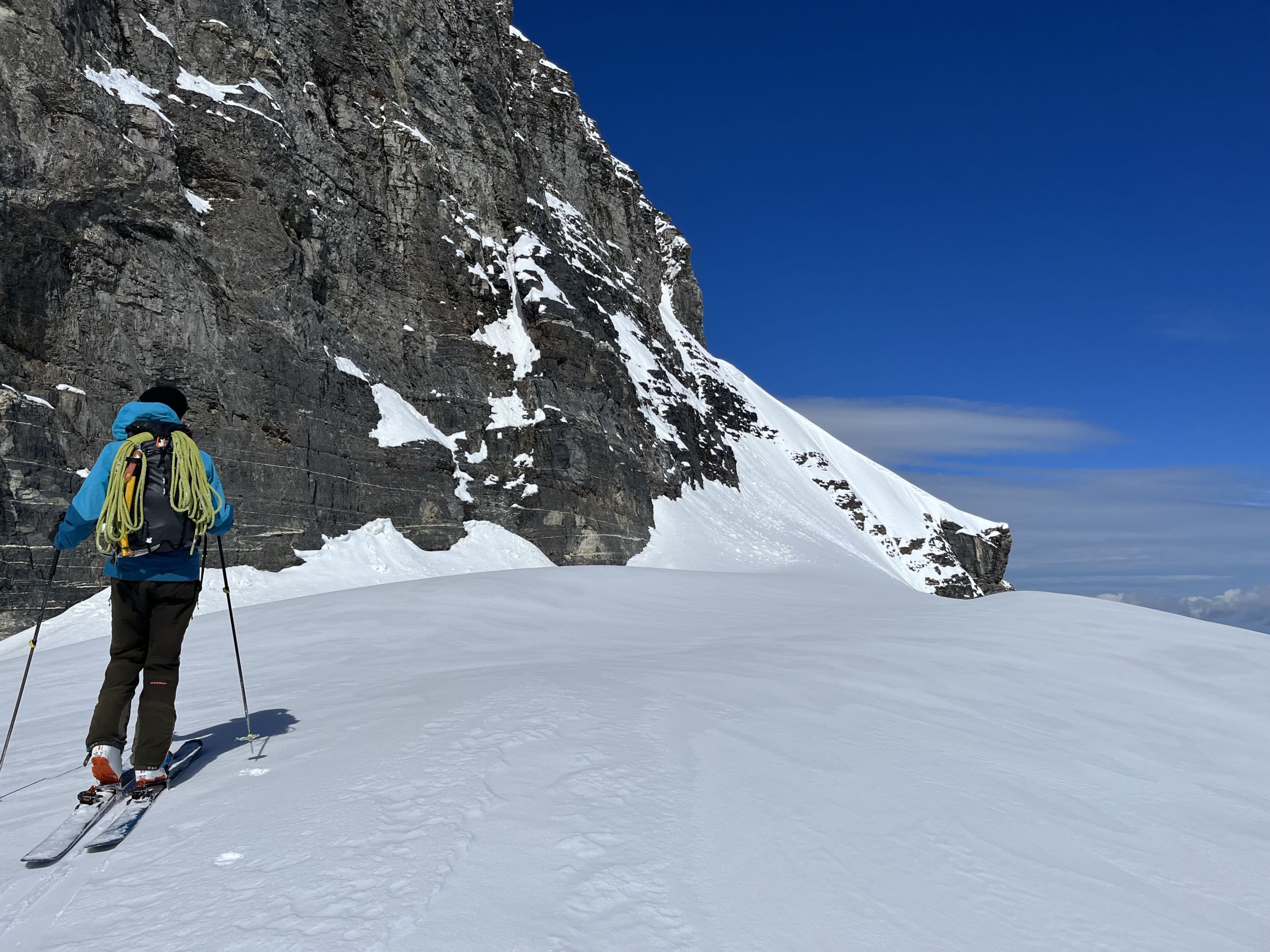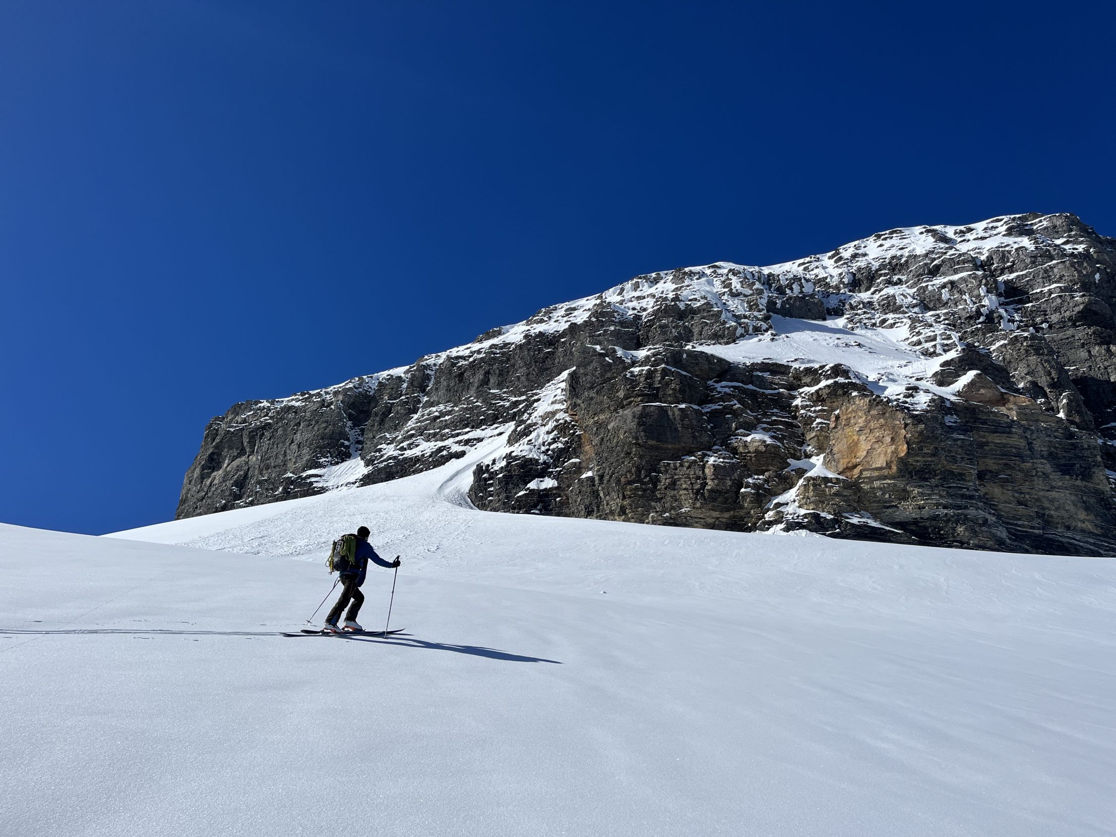 Start um 4:00 von Gorezmettlern Parkplatz. Um die tiefste Schnee/lawinenzunge zu erreichen muss man bis ca. 1750m oder 30. min laufen. Aufstieg entweder mit Steigeisen oder Harscheisen und guten Willen für ca. 300hm - beides mühselig. Danach breite, harte Schneefläche. Ab ca. 2800 leichte Schneeauflage. Leider waren wir erst um ca. 9:15 am Einstieg, Aufstieg war zu Zeitraubend, Schnee der ersten Hälfte der Route entgegen der Nordwandbezeichnung schon voll in der Sonne, Schnee rutschte schon teilweise , auch Auflage auf Fels recht dünn, daher beliessen wir es bei der Inspektion. Spannort wurde auch bestiegen, wenn gefühlt schon zu spät am Tag dafür um 10:00. Sind nachher zum Wintertürmli und um 11:00 abgefahren. Sowohl oben als auch unten dann 2-3 cm aufgefirnt allerdings gleich mit Bremswirkung. Im Osthang unterm Wintertürmli scheint um 7:30 schon die Sonne voll rein, entsprechend ist der Schnee uns um 11:00 bereits nachgerutscht. 1-2h später wird die Menge wahrscheinlich nicht mehr gutmütig sein!