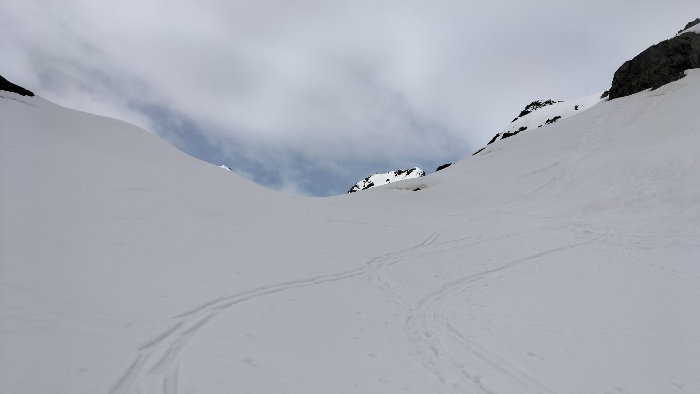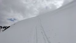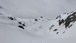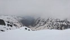 Start der Tour am 9.00 Uhr beim Gotthardpass, gerade eine kurze Wetterbesserung, unten recht gute Schneedecke , oben feuchter Nassschnee, beim Gipfel schon wieder leichter Schneefall.