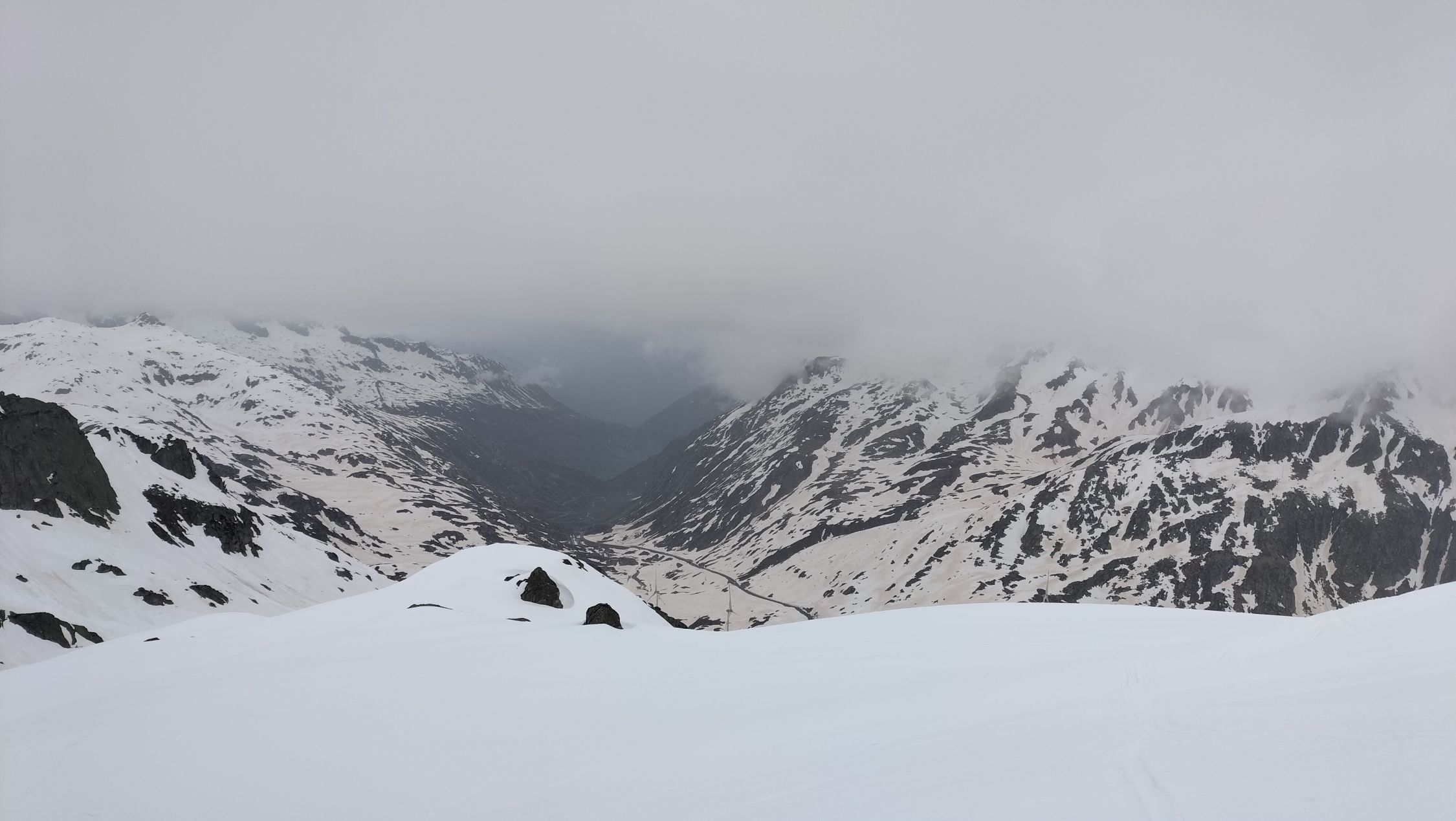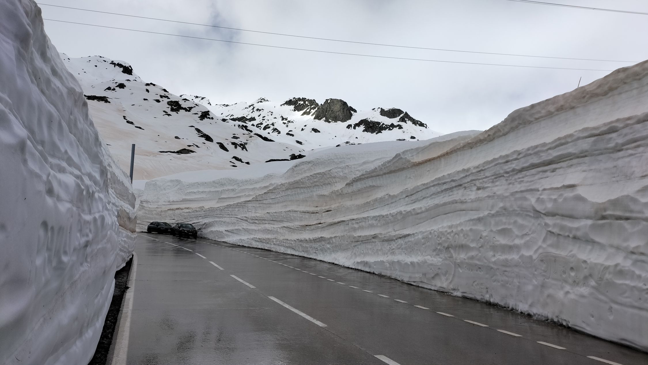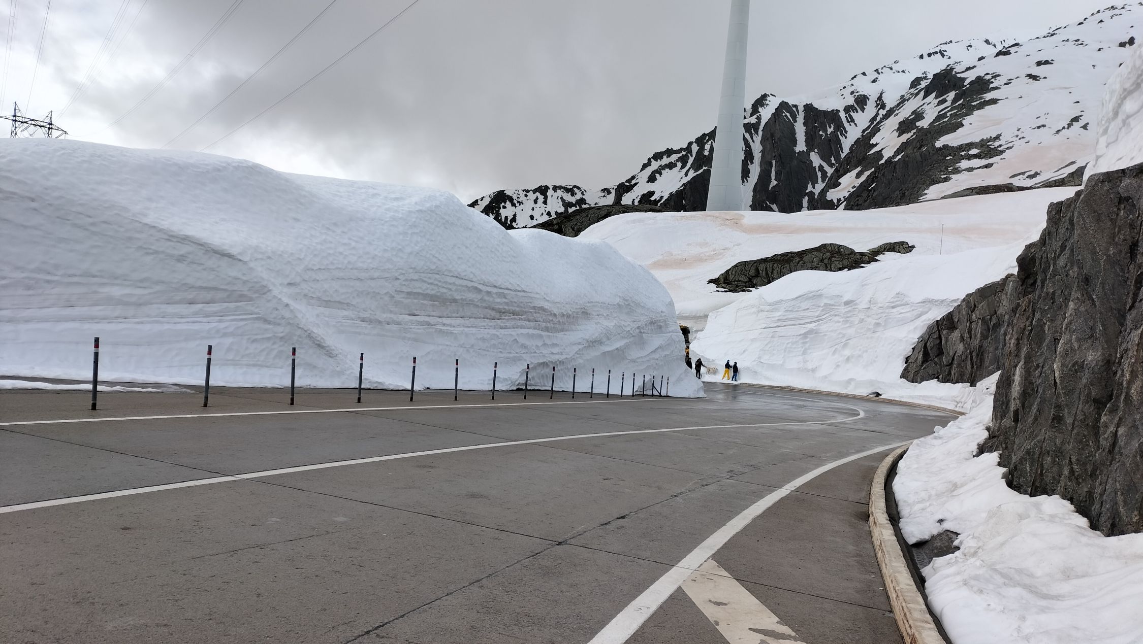 Sehr viel Schnee auf dem Gotthardpass, vielleicht geht er dieses Jahr gar nie weg.
