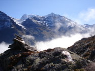 Vom Col des Otanes an hatte es etwa 10-15cm Schnee. Der Aufstieg durch das Couloir von Westen ist steil, rutschig und mit den groben Blöcken zur Zeit etwas mühsam.(T4)