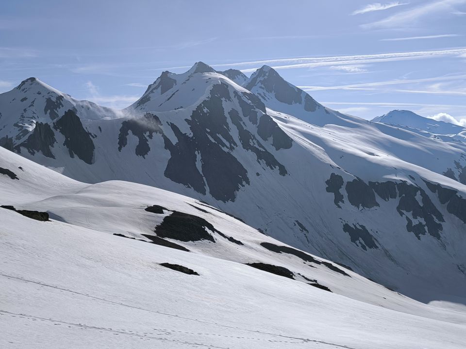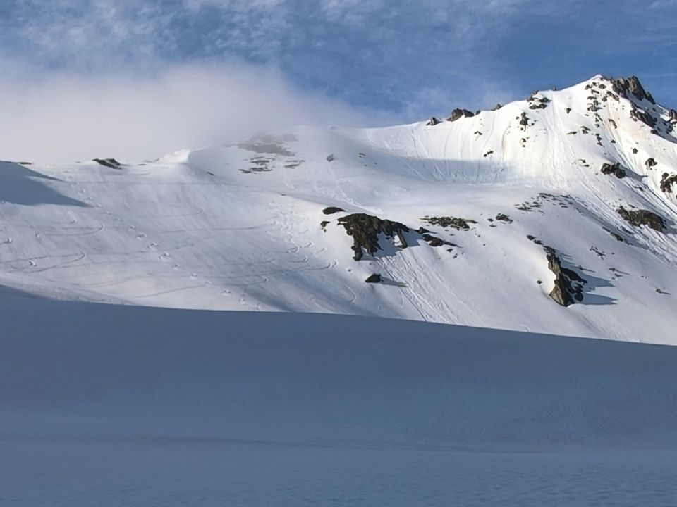 Schnee um 6 Uhr beim Start hart. Bei den Gloggentürmli war der Schnee überraschenderweise nicht nur auf der Südseite sondern auch auf den Nordseite sehr weich. Vermutlich hing dort letzte Nacht eine Nebelschwade. Der aufziehende Nebel, die nassen Felle und der weiche Schnee bewegten mich das Unternehmen Pizzo Centrale zu canceln. Bin vom Grat der Gloggentürmli auf den Pizzo Fortünei. Von dort kurze Abfahrt, um das Schwarzlochhorn mit zu nehmen. Danach Abfahrt bis Alpe di Fortünei bei besten Wetter und Schnee. Dort entschied ich noch auf die Sunnig Lücke mit lausig haftenden Fellen zu gehen, um zu Fuss und kraxelnd den aperen Blauberg zu machen. Mit dem Blauberg als würdigen Ersatz für den Pizzo Centrale trotzdem eine sehr schöne abwechslungsreiche Skitour.