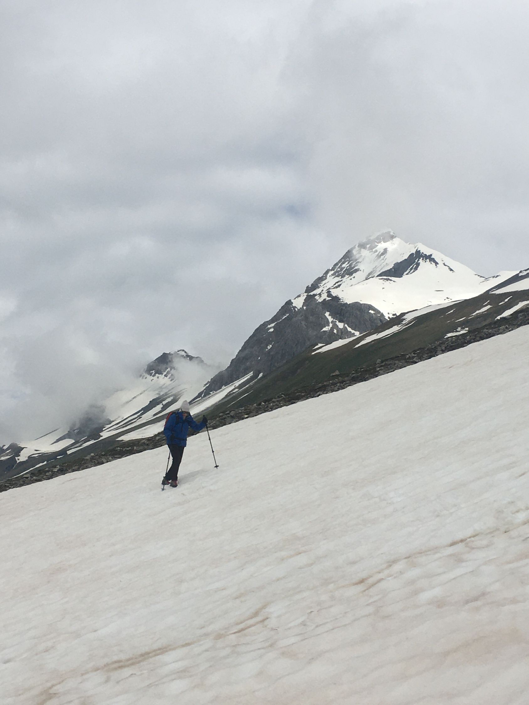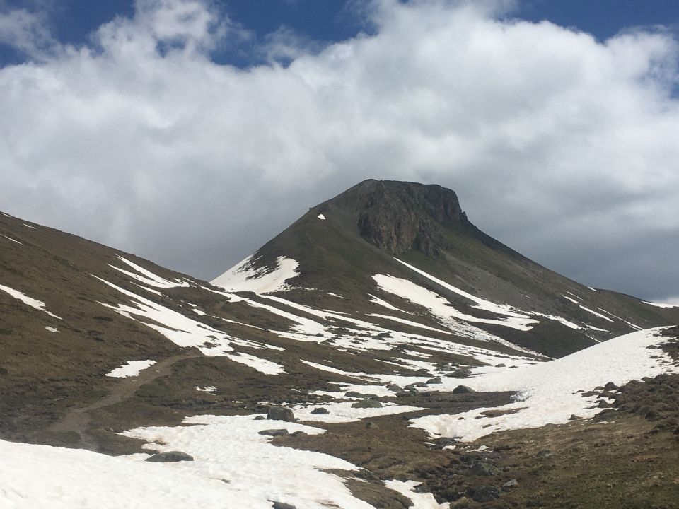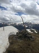 Winterliche Tour auf den kleinen Gipfel in der Gratkette Blaisun-Üertsch-Igl Compass. T3+. Start Parkplatz Es-cha Hütte Albulapassstrasse. Der markierte Wanderweg hatte noch einige unangenehme Schneefelder in den Rinnen. Eine langgezogene Wächte war mühsam zu umgehen. Auf dem Westgrat das steile Weglein schneefrei. Sehr starker Westwind. Abstieg zuerst auf Wanderweg, auf halber Strecke steiler Abstieg zur Passstrasse. Verhältnisse zwischen machbar und gut.
