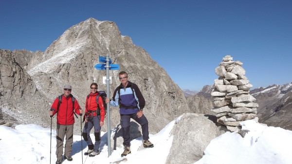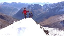 Tag 4: Krönung unseres Bergell Trekkings ist heute die Gipfelbesteigung des Monte del Forno (3214 m). Das köstliche Frühstücksbuffet gibt uns Kraft uns so erreichen wir schnell die Sella del Forno und die Felsen des Südgrates. Danke den Erschliessern, die einige Fixseile montiert haben. So wird das Klettern zum Genuss. Weiter oben geht’s in der verschneiten Flanke höher, zuletzt noch ein kurzes Firngrätchen und wir stehen am höchsten Punkt unserer Trekkingtour. Die Aussicht ist das Highlight des Sommers. Einfach fantastisch. Mit dem Abstieg zurück zur Forno-Hütte und dem langen Weg hinaus zum Malojapass, endet eines unserer schönsten Bergerlebnisse.