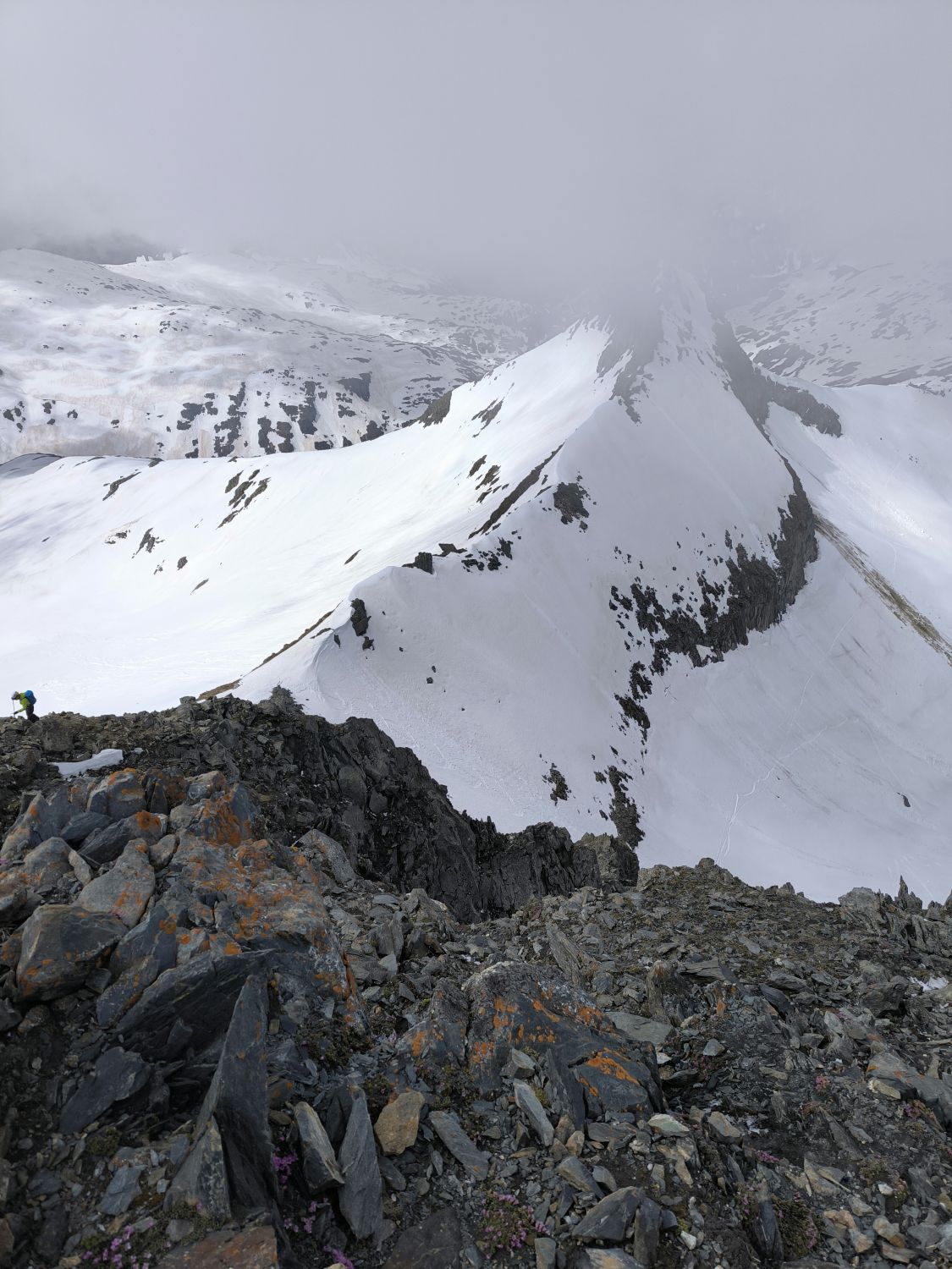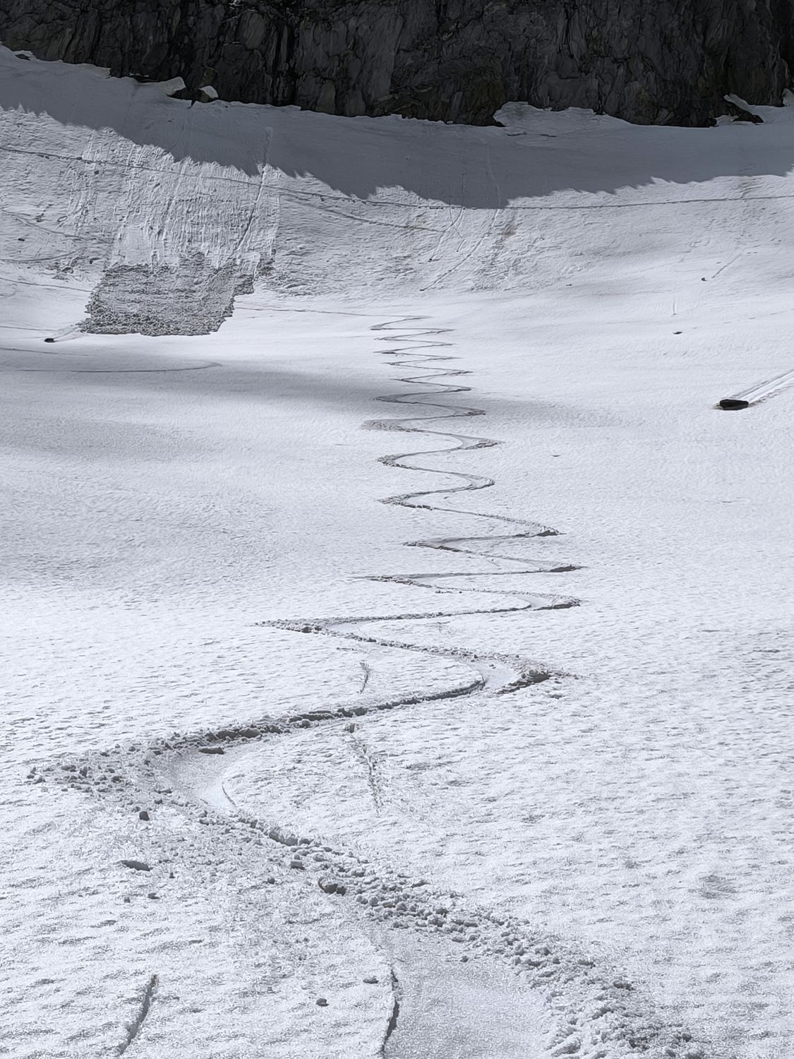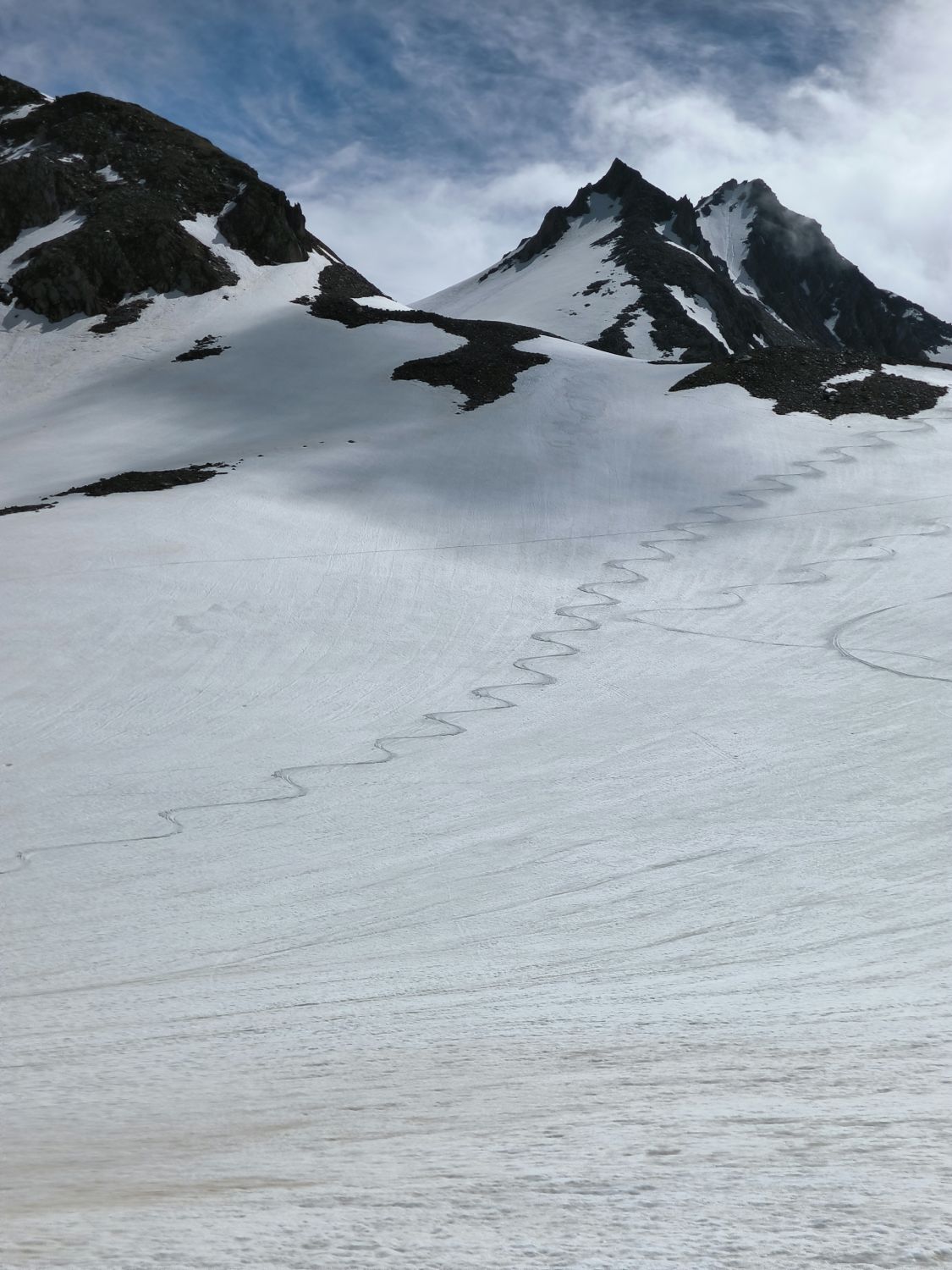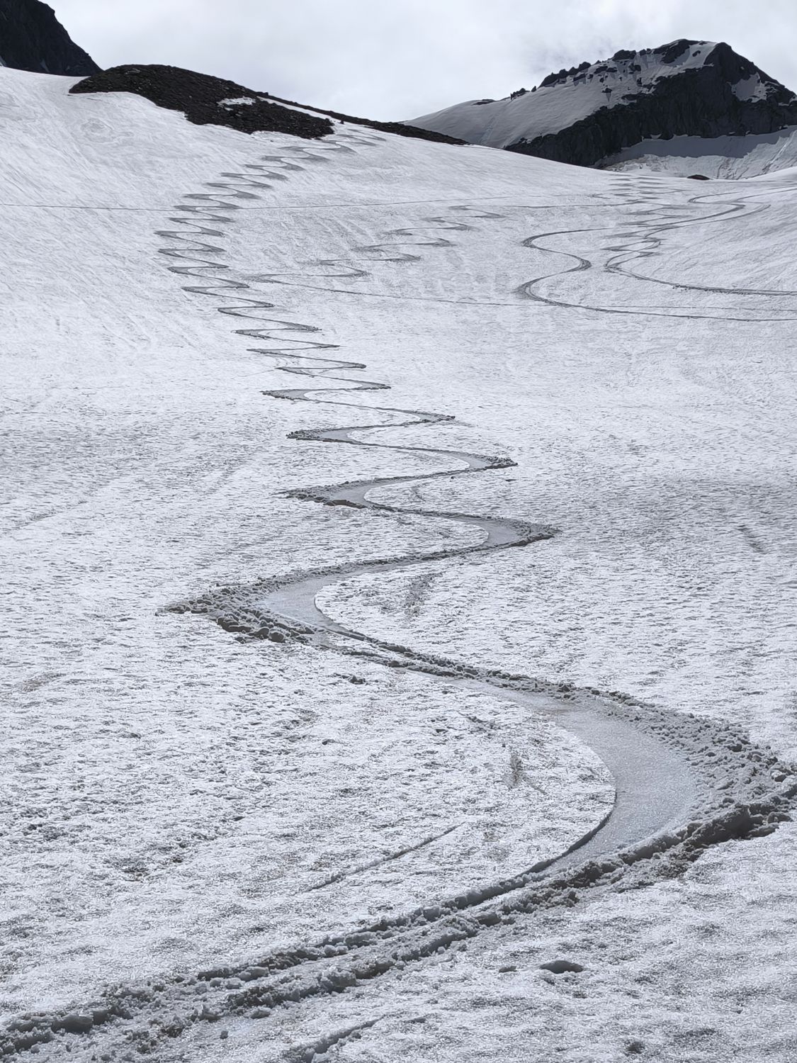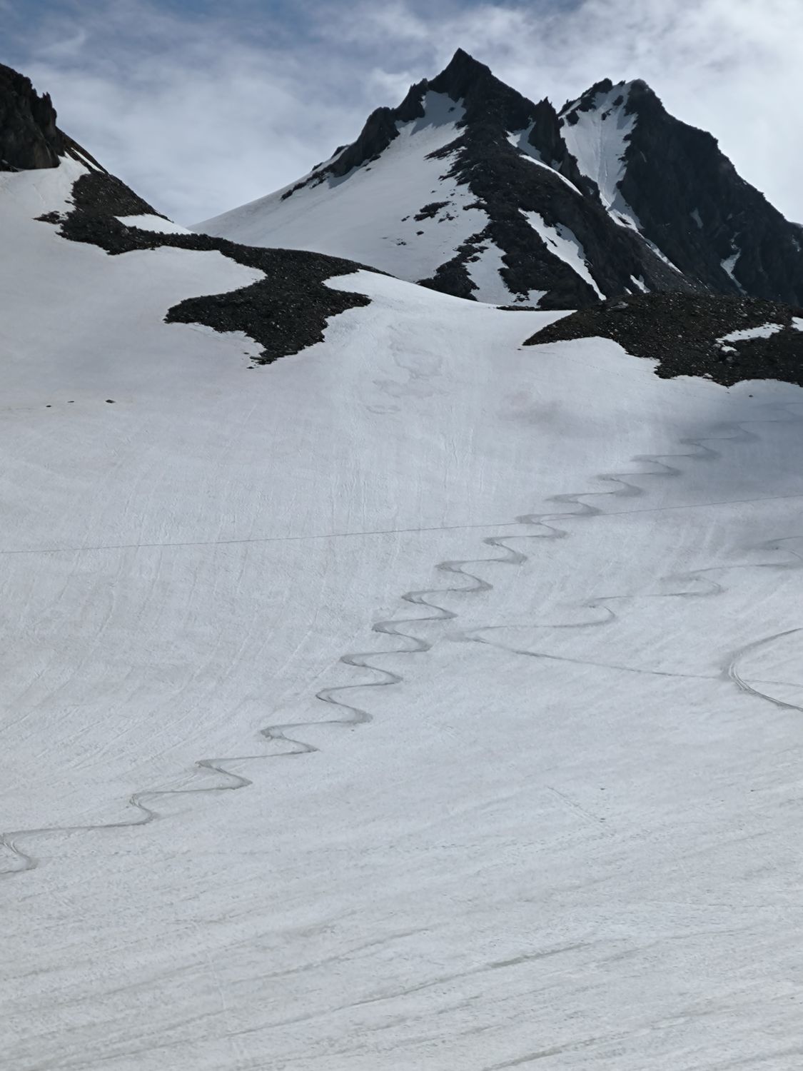 Ja es gab heute ein ausgezeichnet für die Skitour. Die Vorzeichen waren aber alles andere als gut. 2 tägiger Dauerregen im Gotthardgebiet bis auf die höchsten dortigen Gipfel und Nebel zum Tourenstart. Unmotivierter Start um 7 Uhr ohne jegliche grosse Erwartung auf ein tolles Skitourenerlebnis. 5 mal musste ich kurzzeitig die Ski abschnallen, um die aperen Stellen zu queren. Danach kam ich endlich in den Bewegungsflow rein. Sowohl auf den Hin als auch Rückweg wählte ich die Variante über Pizzo Fortünei/Gloggentürmli. Beim Aufstieg ging es noch zusätzlich über das Sellabödeli, um keine Höhe zu verlieren. Die Ski nahm ich zur Scharte vom Pizzo Centrale mit. Dort war dann Skidepot. Der Gipfelaufstieg war unspektakulär und bis auf ein kleines Schneefeld aper. Nach 3 Std war ich auf dem Gipfel. Pickel, Steigeisen und Harscheisen hat es nicht gebraucht. Schon nach der Abfahrt von der Scharte wusste ich dass es heute ausgezeichnete Abfahrtsverhältnisse hat.